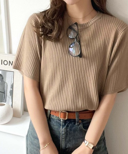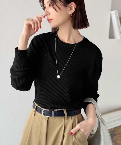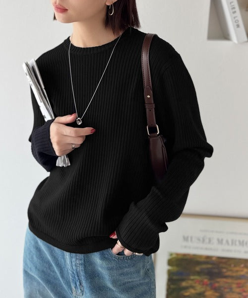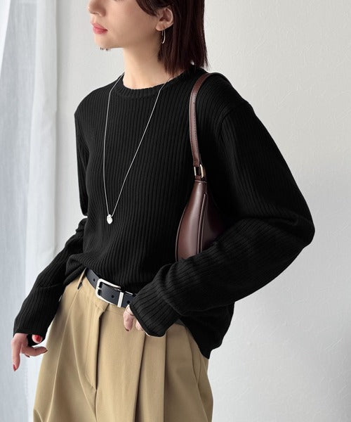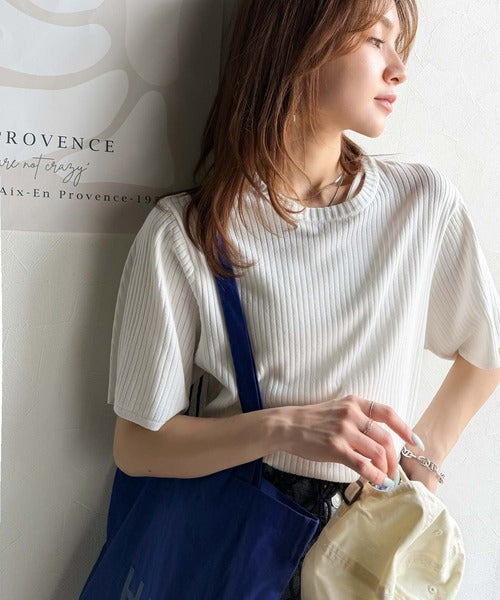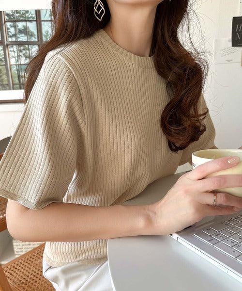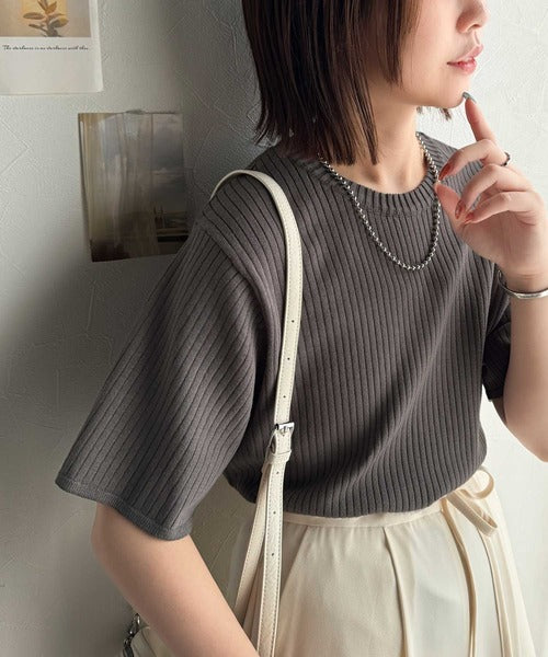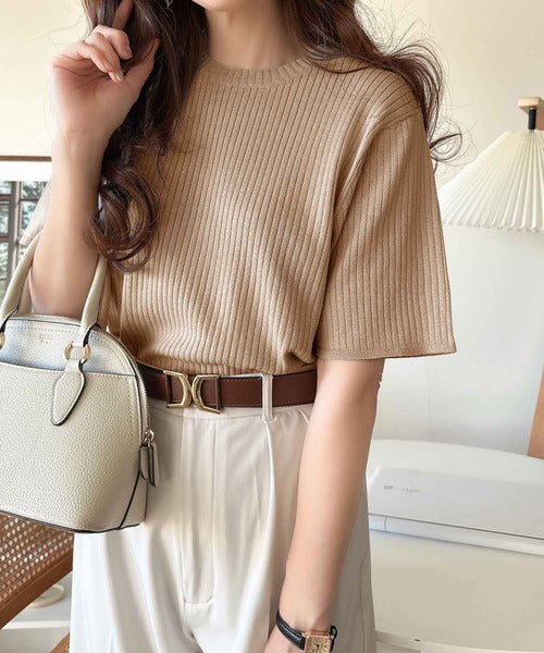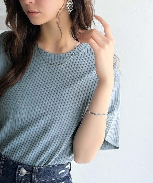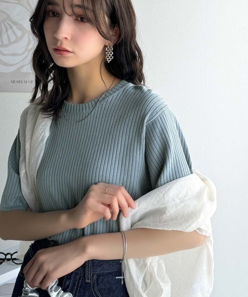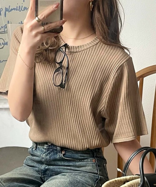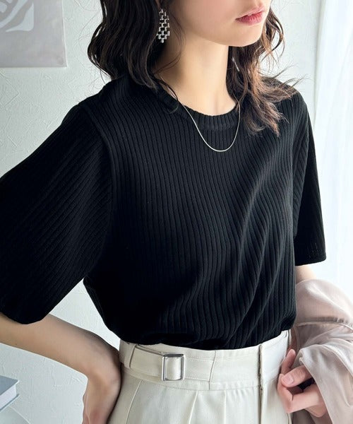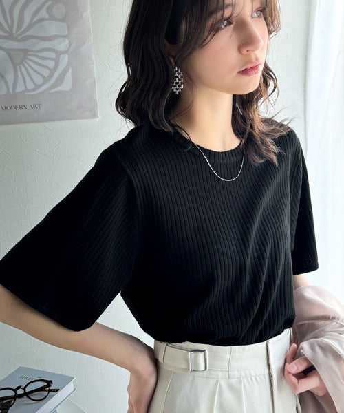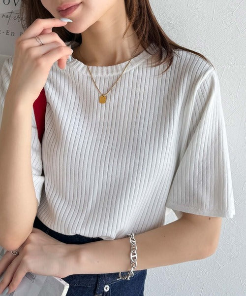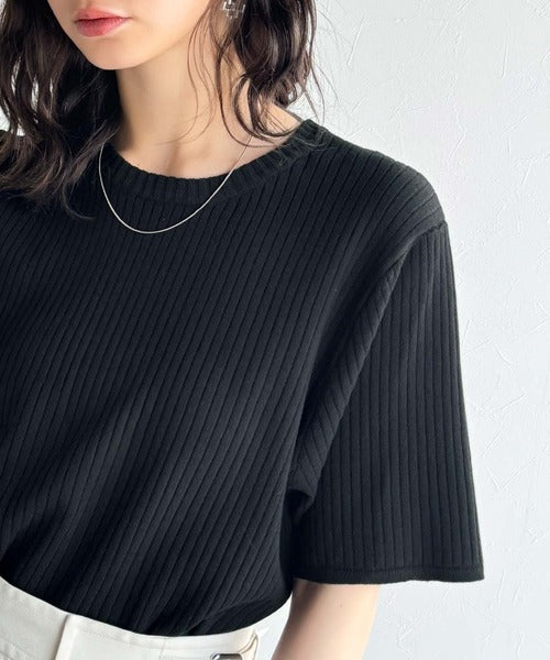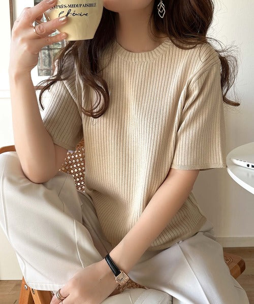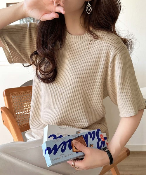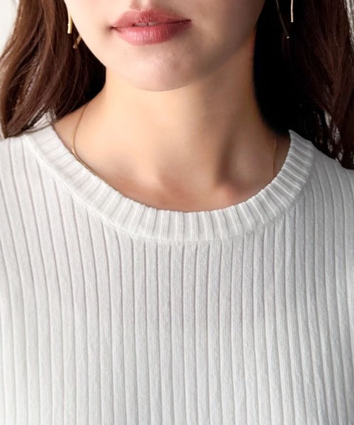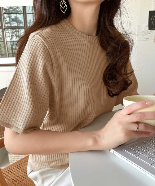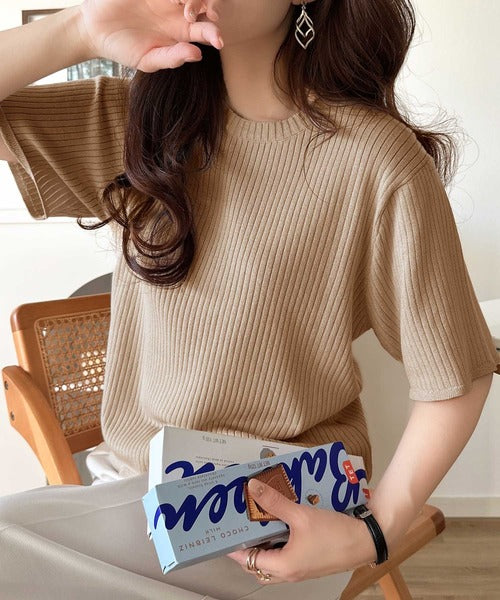 着映えトップス。シンプルライトリブニット(半袖・長袖) ce1050304