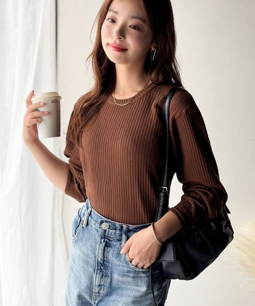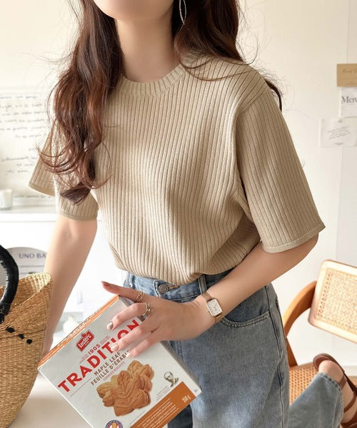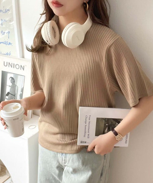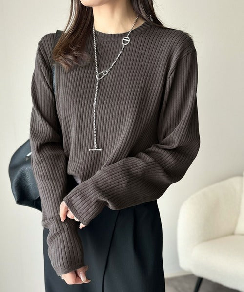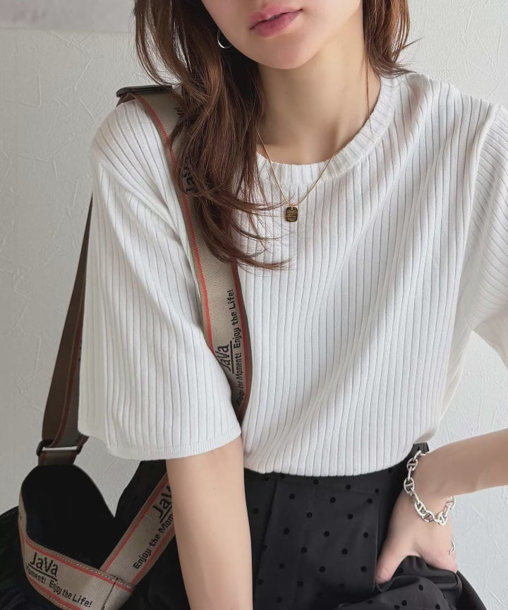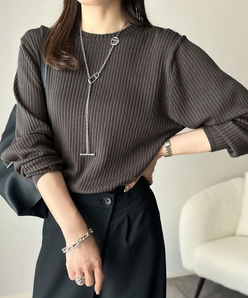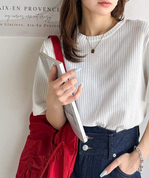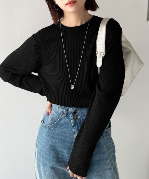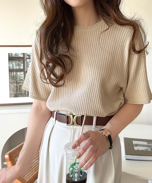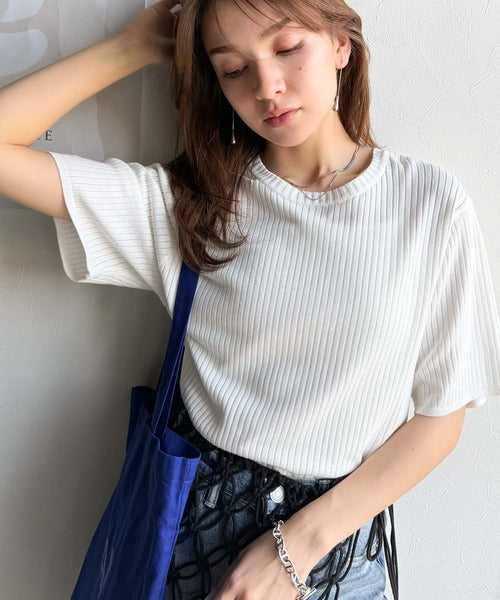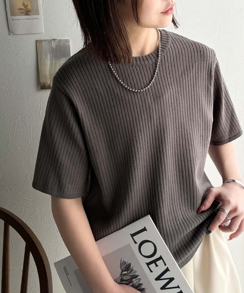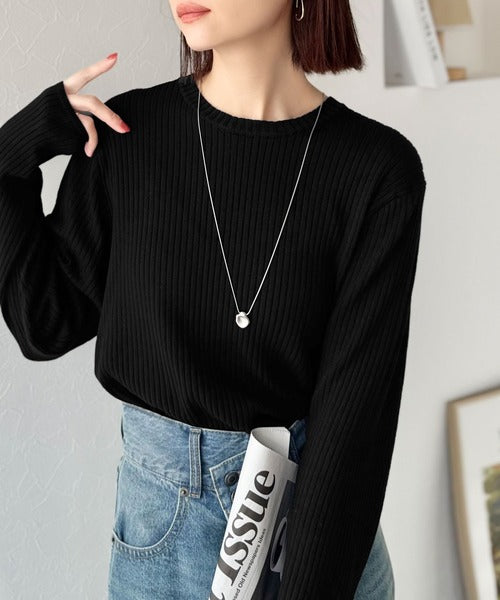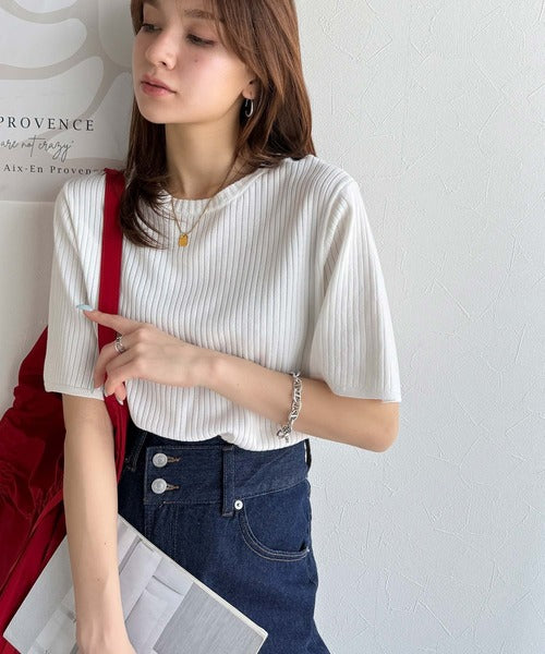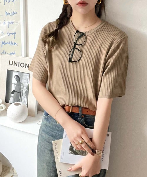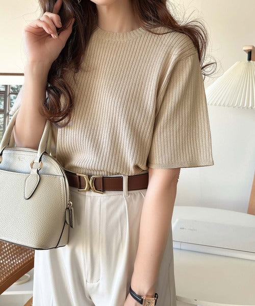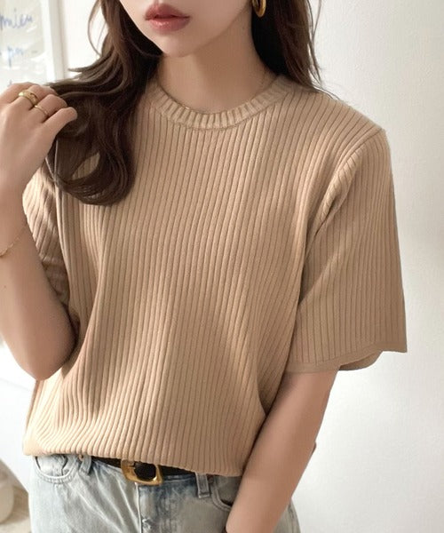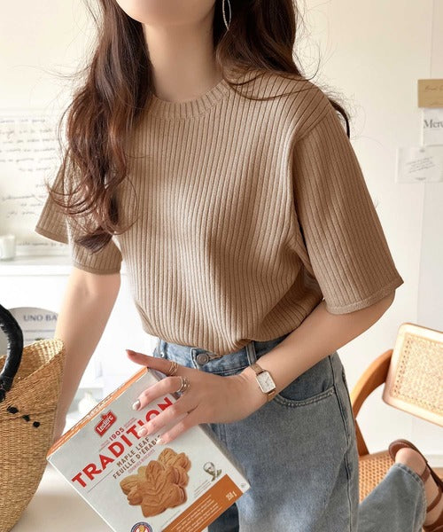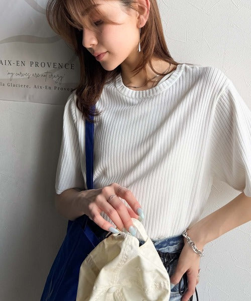 着映えトップス。シンプルライトリブニット(半袖・長袖) ce1050304