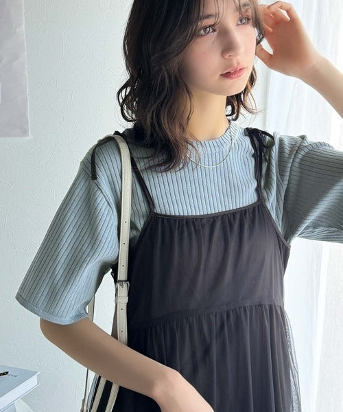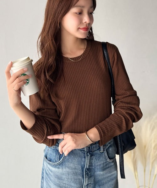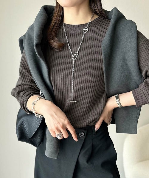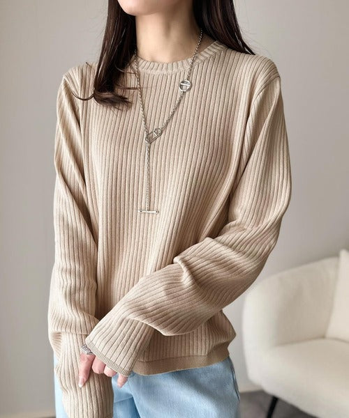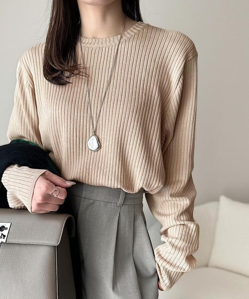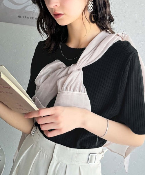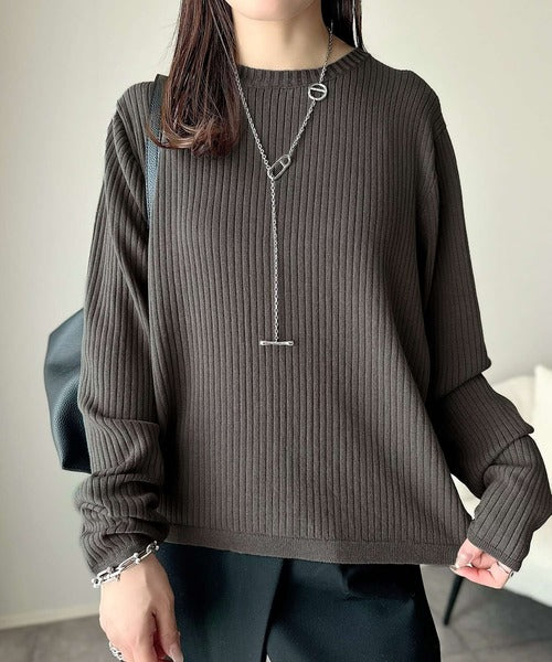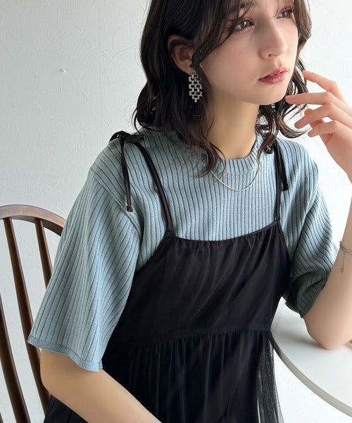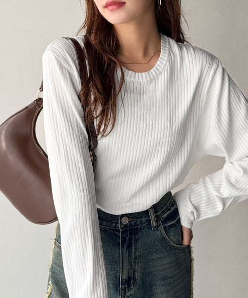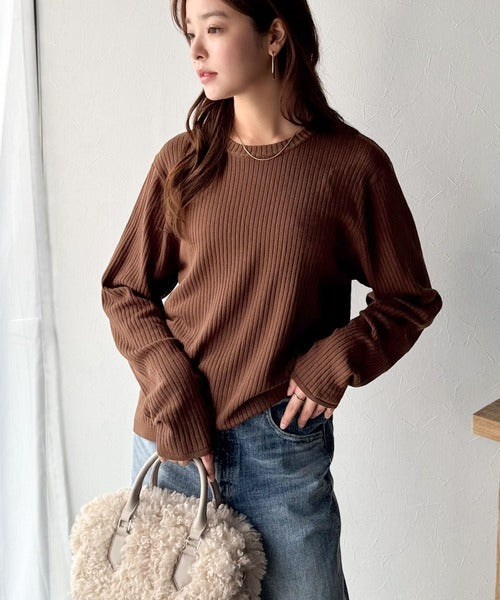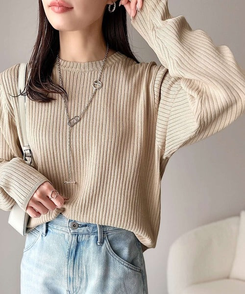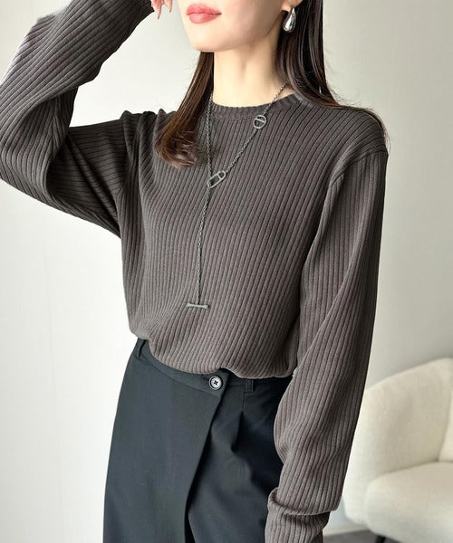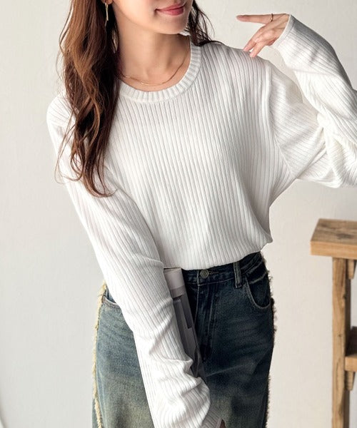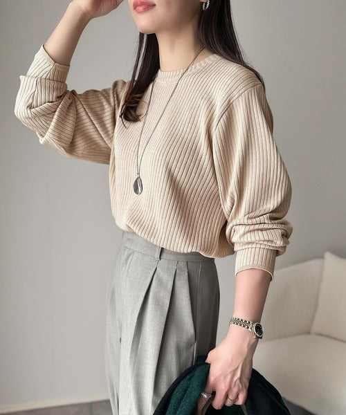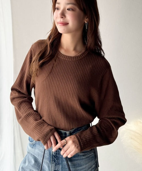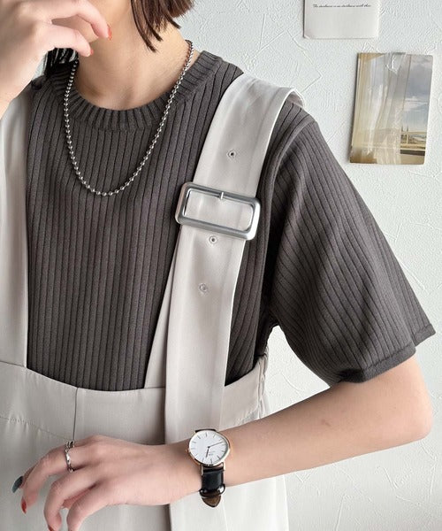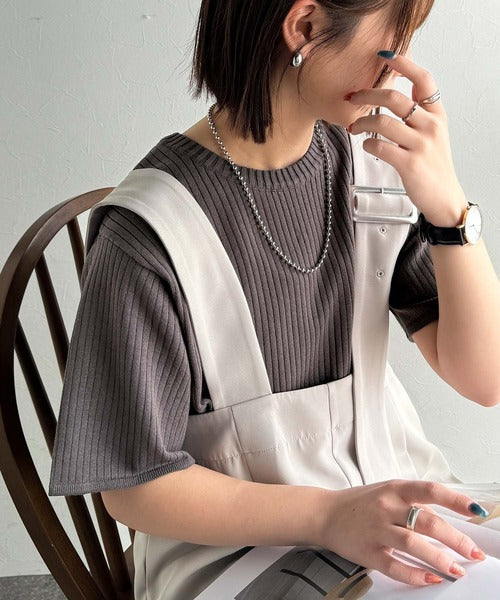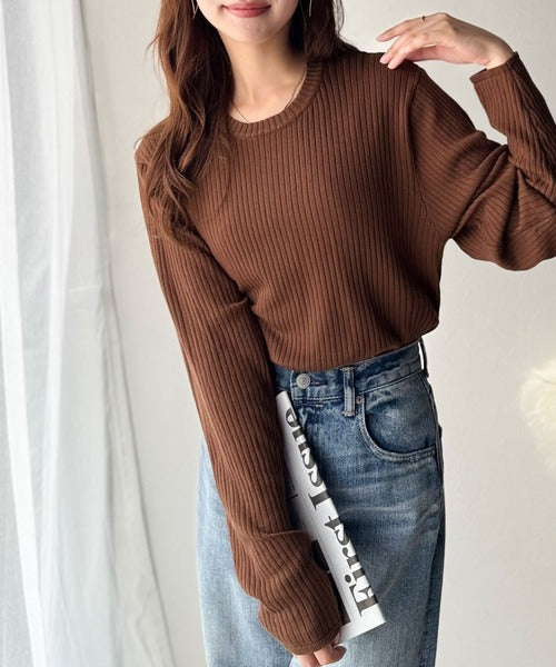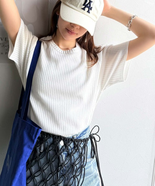 着映えトップス。シンプルライトリブニット(半袖・長袖) ce1050304
