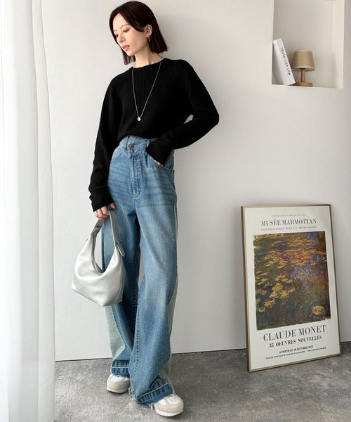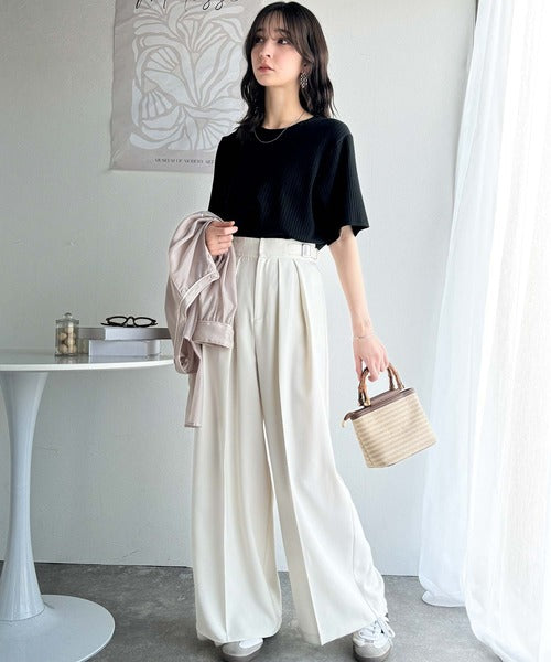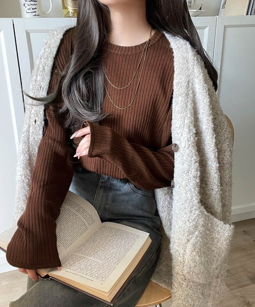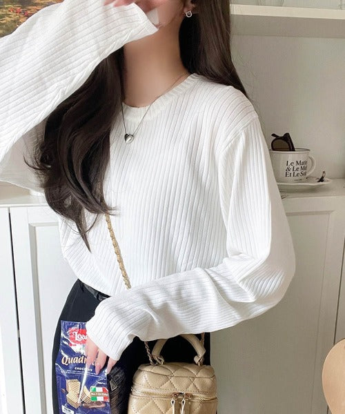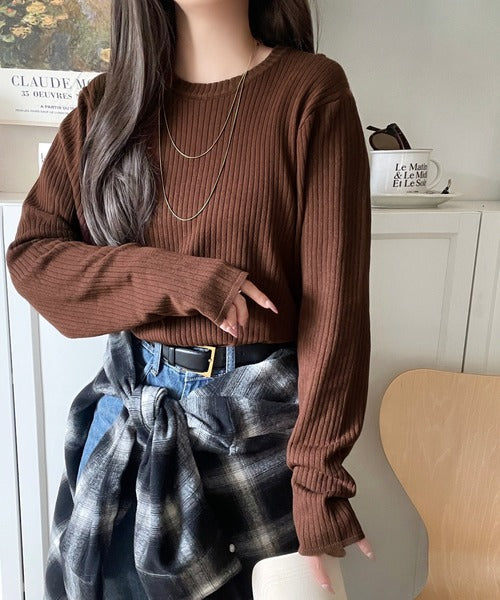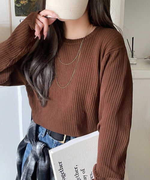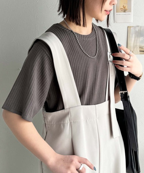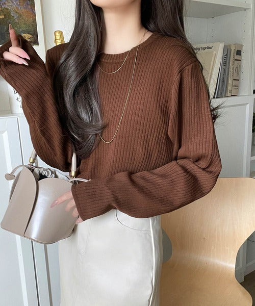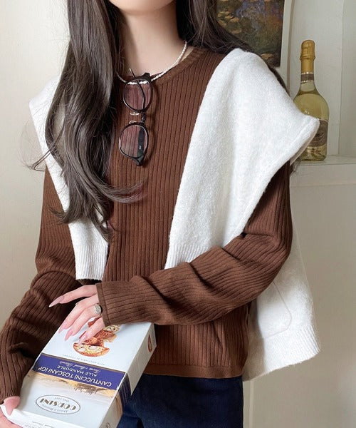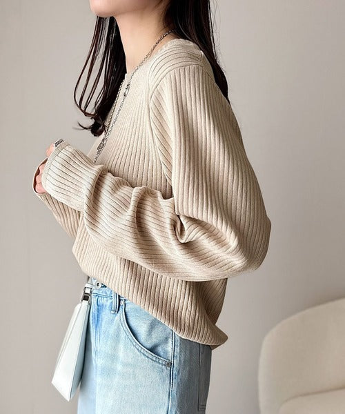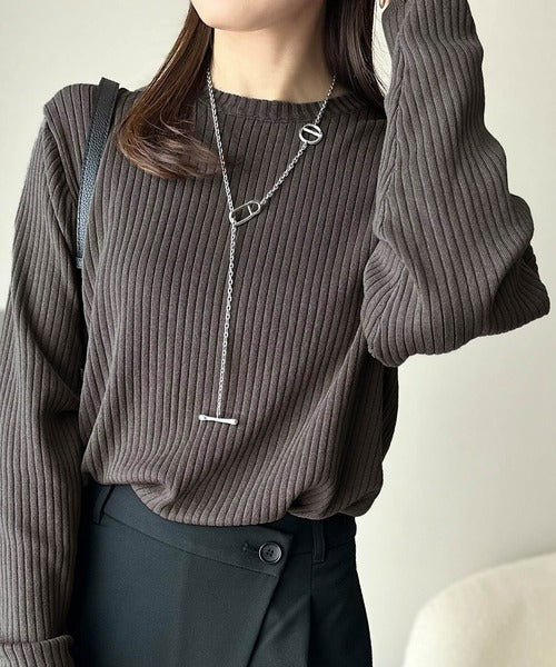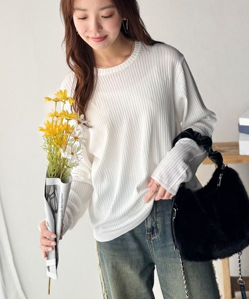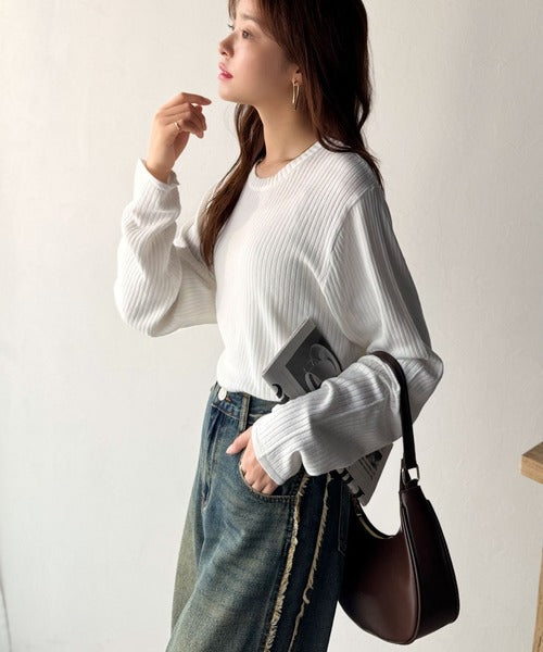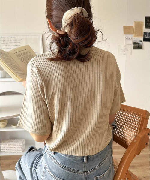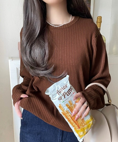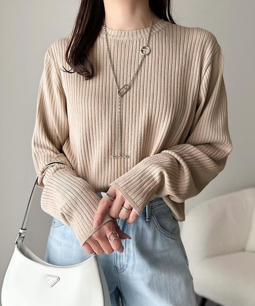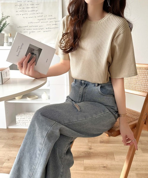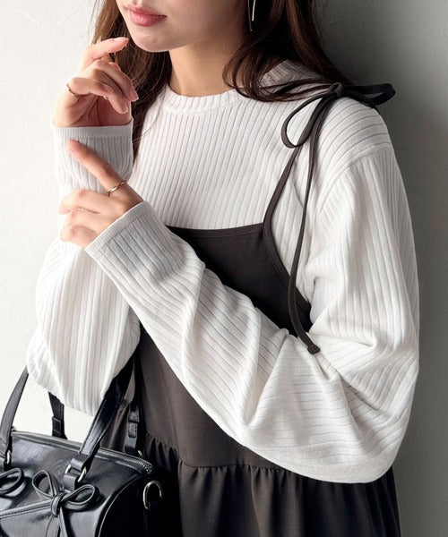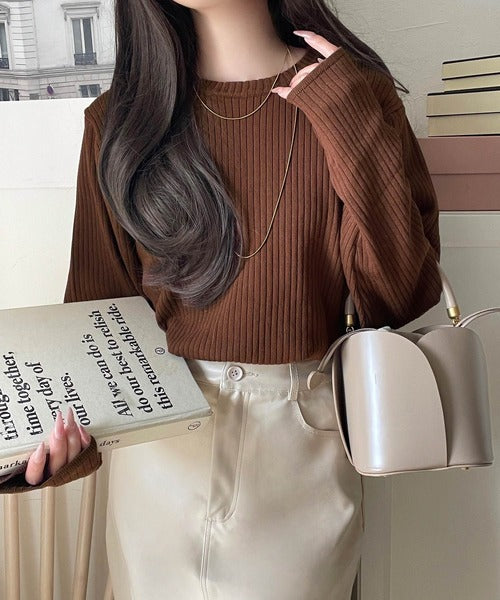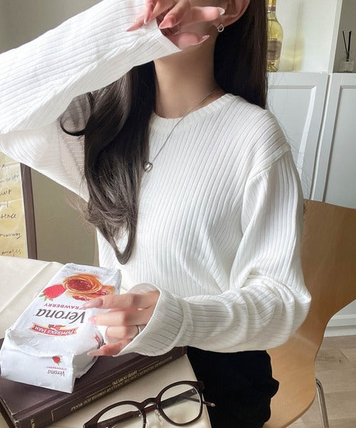 着映えトップス。シンプルライトリブニット(半袖・長袖) ce1050304