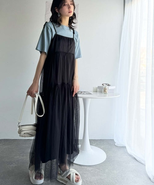 チュールスカートやキャミワンピースを合わせた甘めスタイルまで