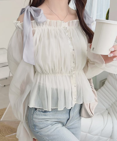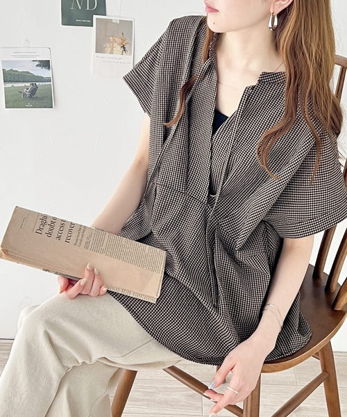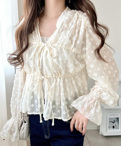 カシュクール開き×リボンで360°どこから見ても可愛いブラウス。