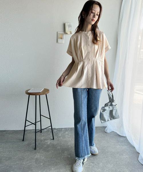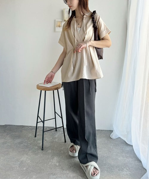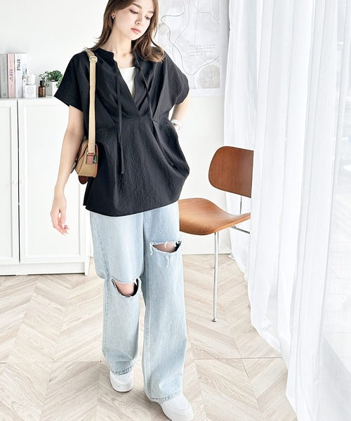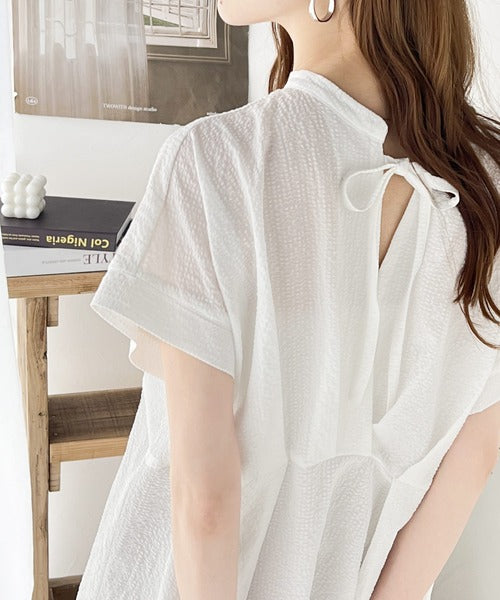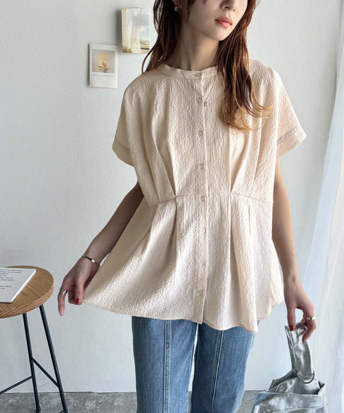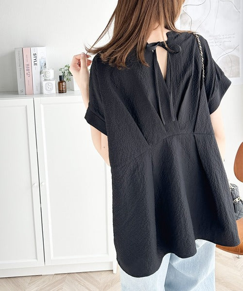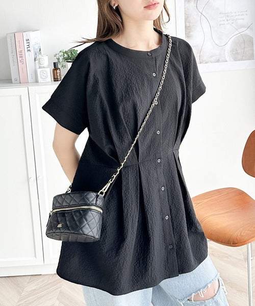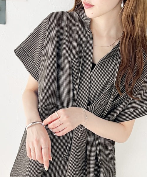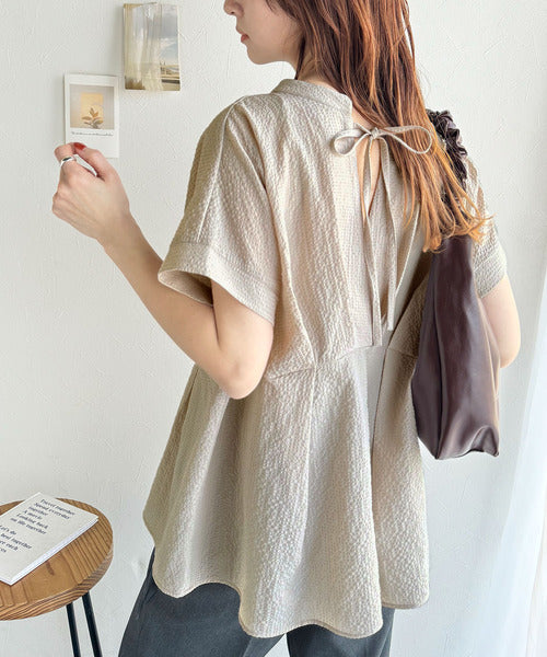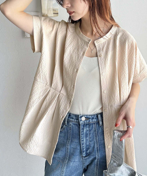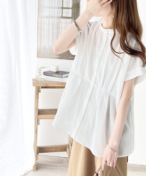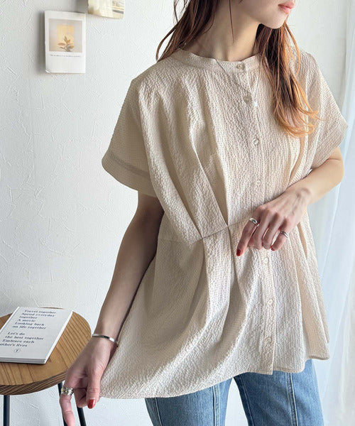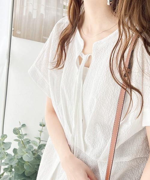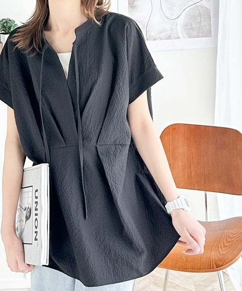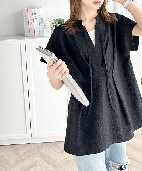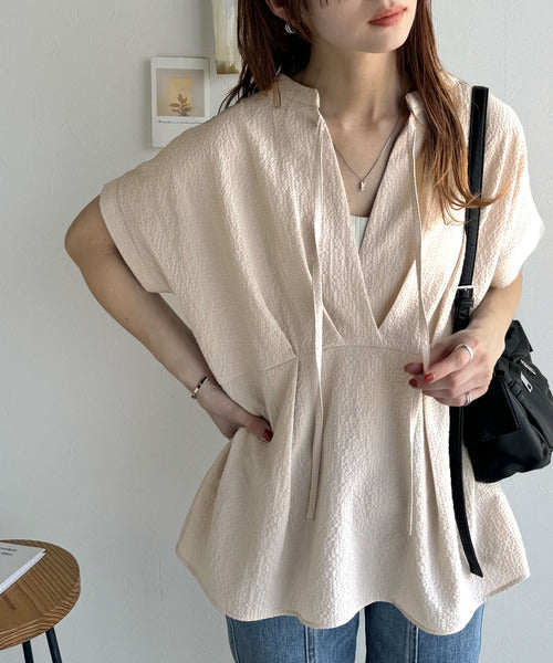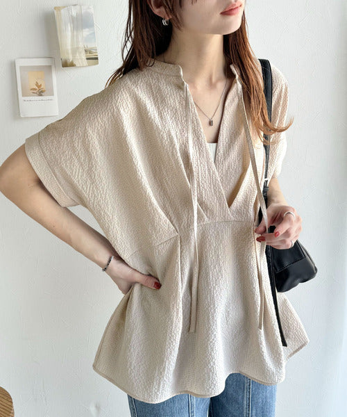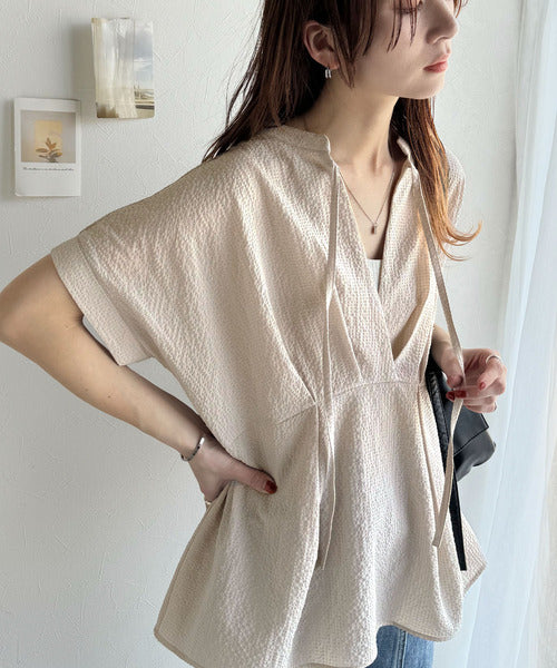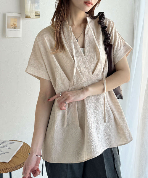 大人の上品さをプラス。前後2wayカシュクールサッカー素材半袖ブラウス ce1070081