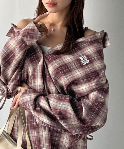 ボタン側を前にして着用すれば、バックの肌見せとリボンがトレンド感をプラス。