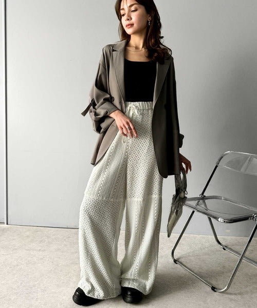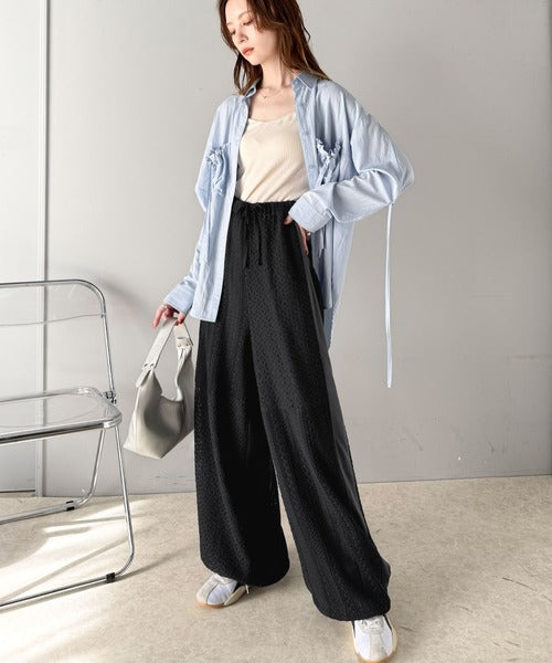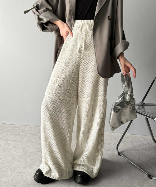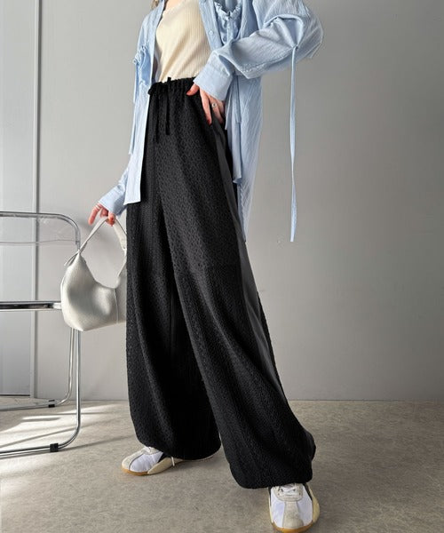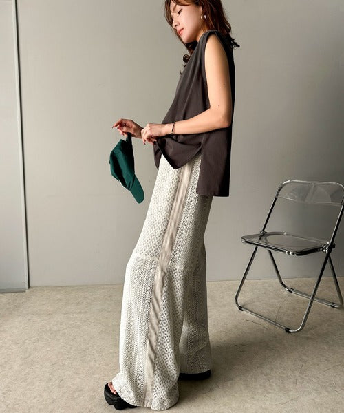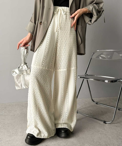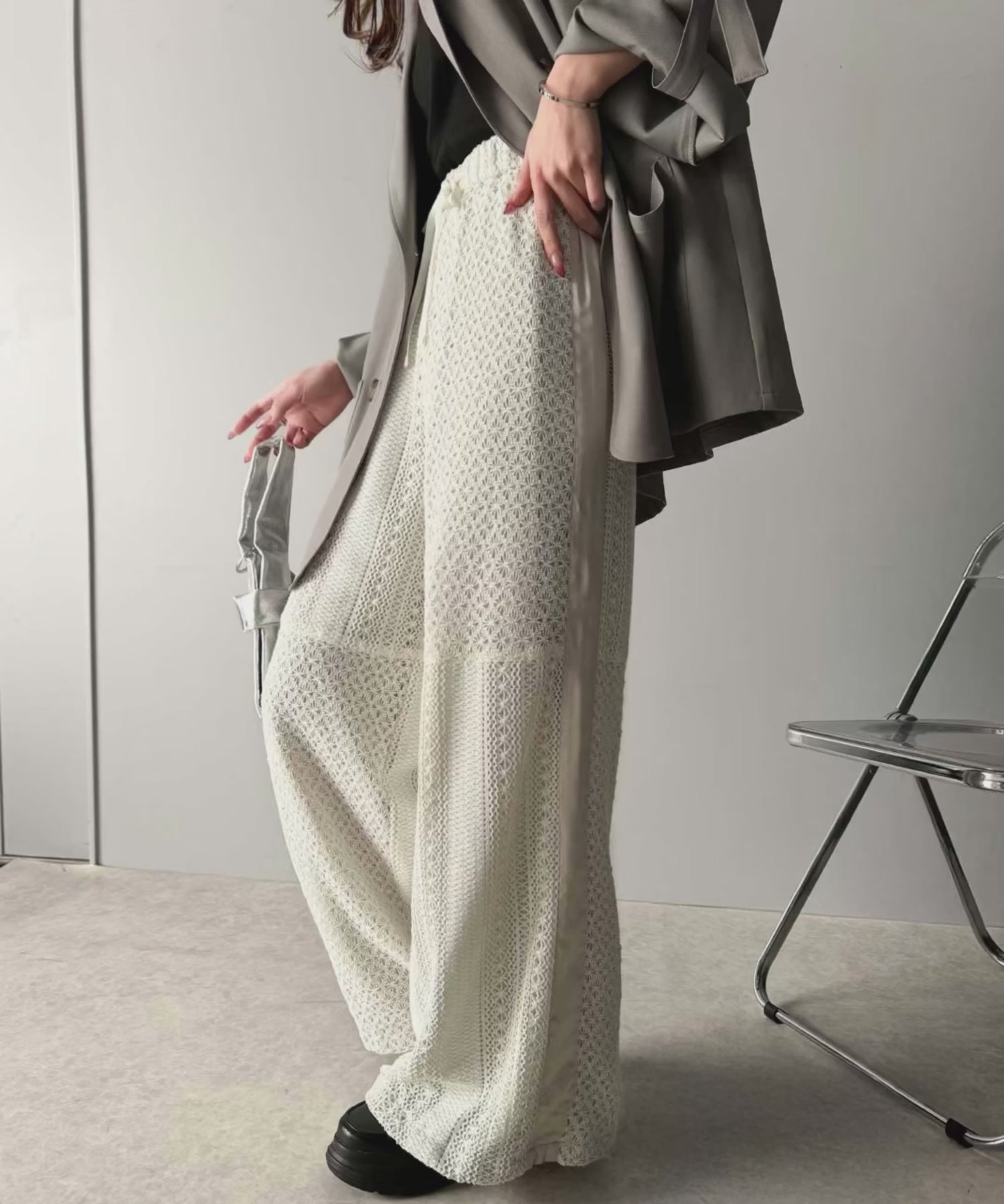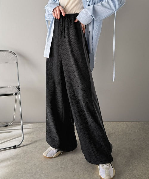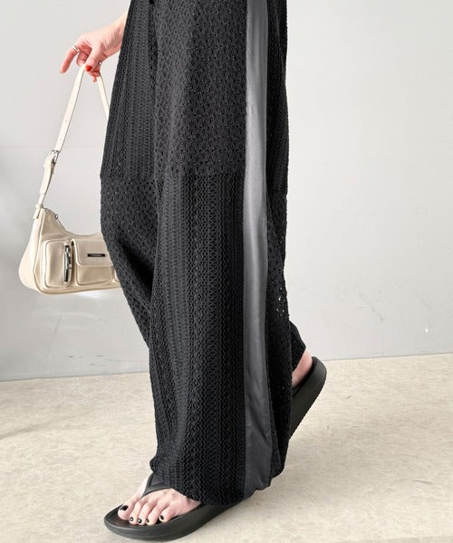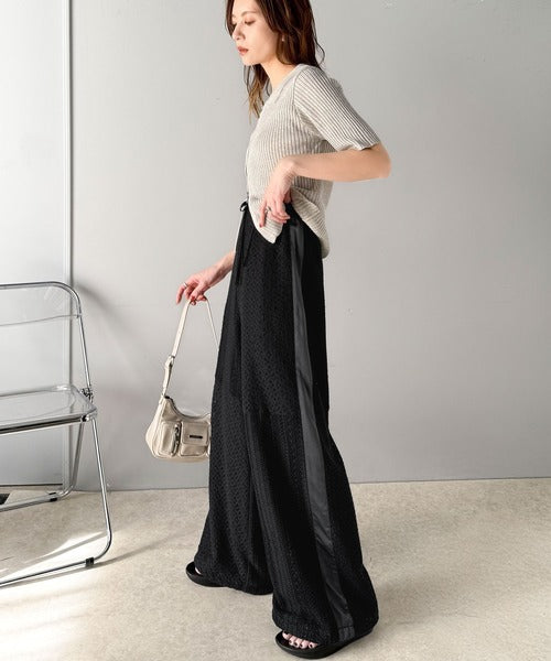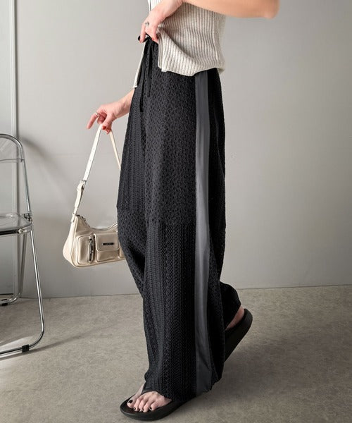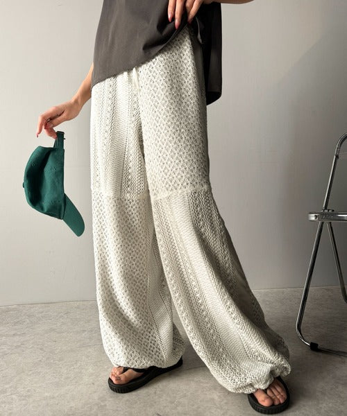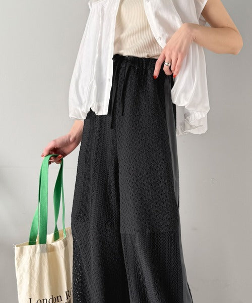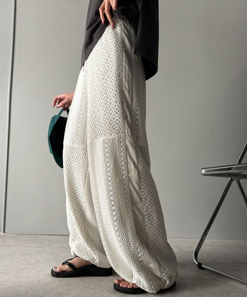 大人華やかリラクシー。レース切替パラシュートパンツ ce1070135