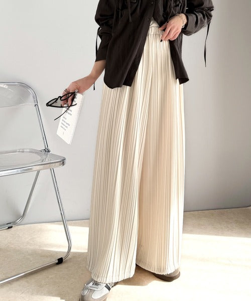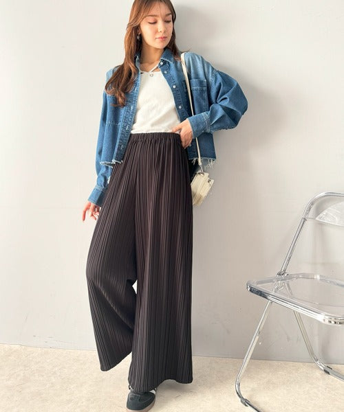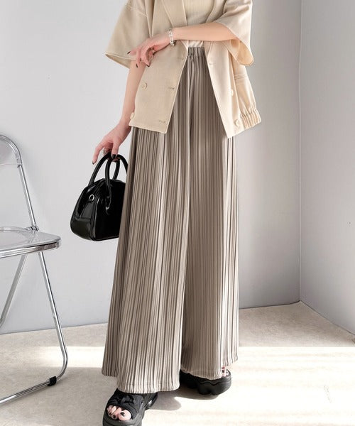 カジュアルながらも洗練された印象を与えるプリーツパンツ。
