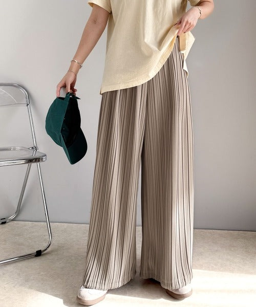 スタイルアップが叶う。2way裾ドロストプリーツ素材ワイドパンツ ce1070156