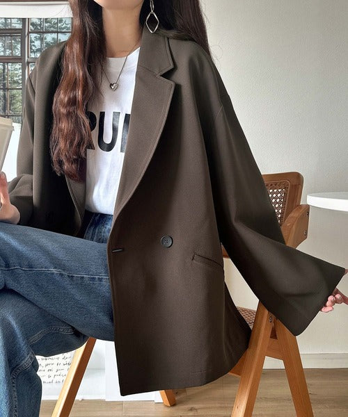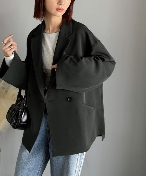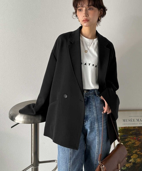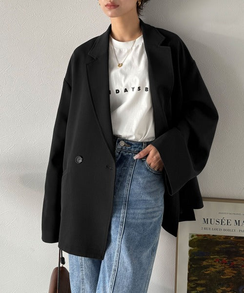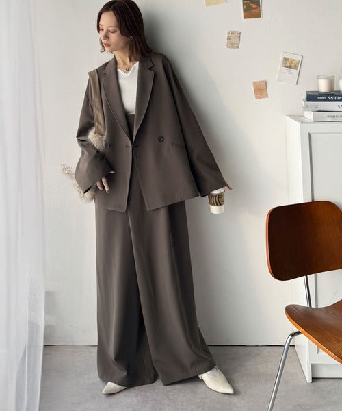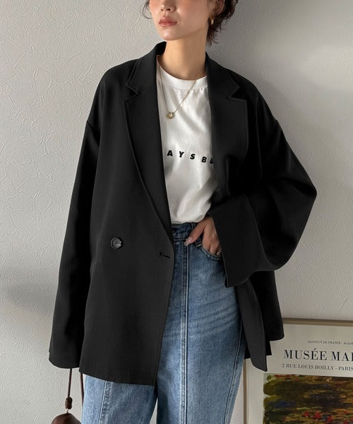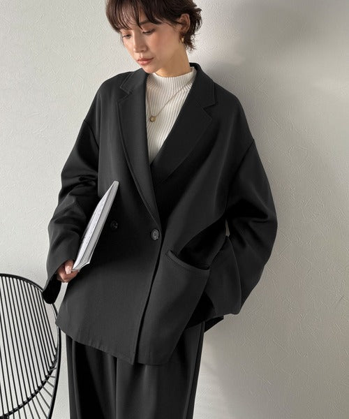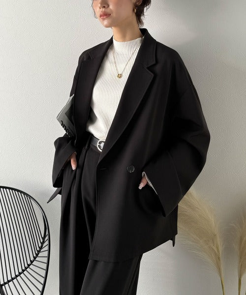 【セットアップ可】自由自在に楽しめる。美シルエットテーラードダブルジャケット ce1070184