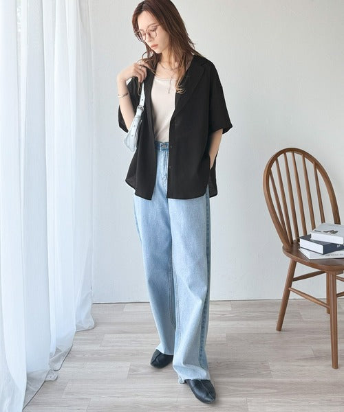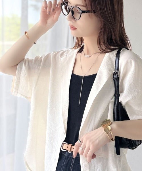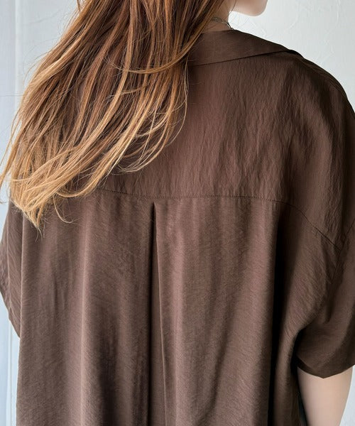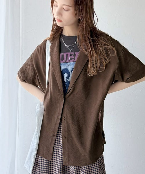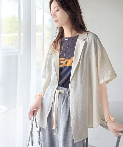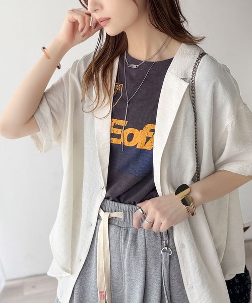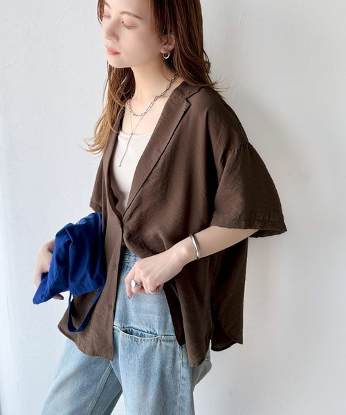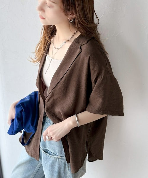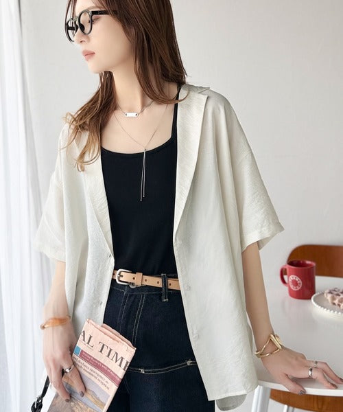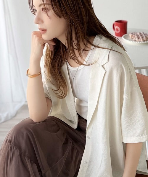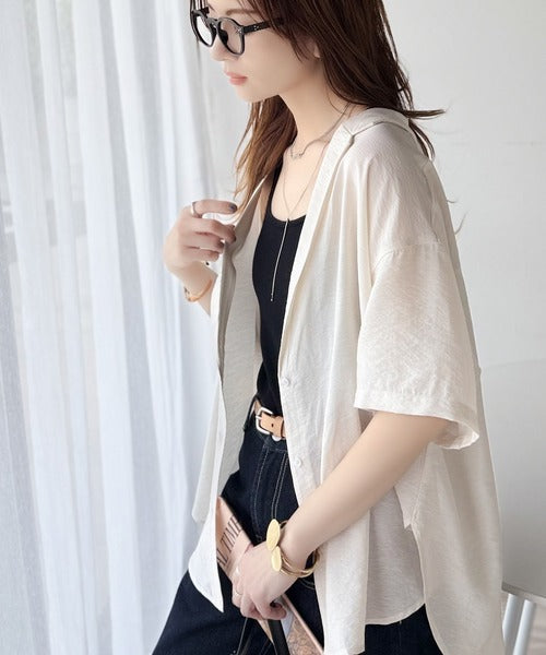 透ける、揺れる、魅せる。ヴィンテージライクシアー素材開襟シャツブラウス(半袖) ce1110125
