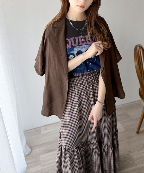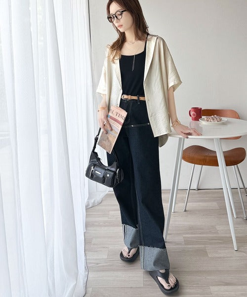 ベーシックシンンプルデザインなのでどんなボトムスにも合わせやすくサマージャケット風に羽織りとしても使えて