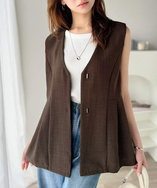 夏コーデを格上げ♪比翼デザイン麻調ペプラムジレベスト ce1110132