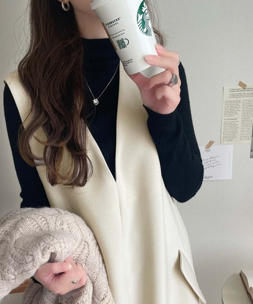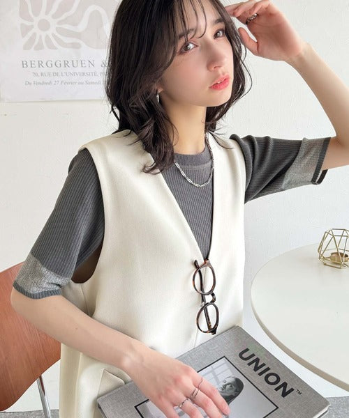 トレンド感のある深Vネックがシャープな印象。