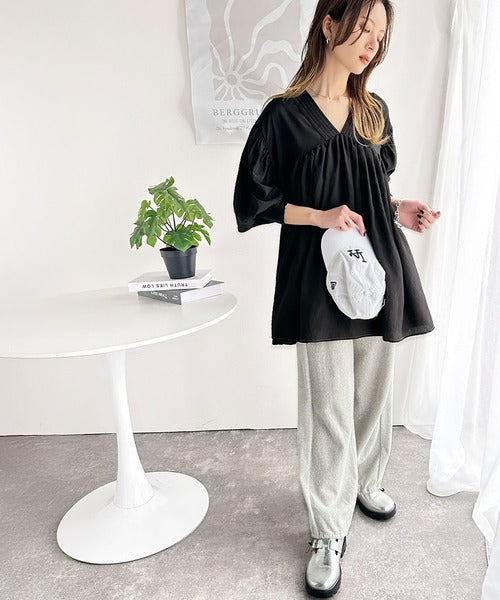 ふんわり袖とボリューム感のあるギャザーデザインがトレンド感満載!