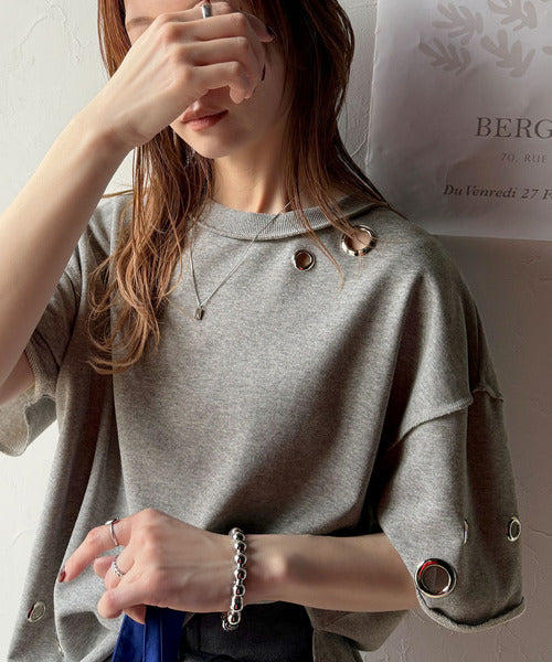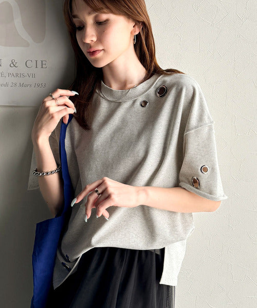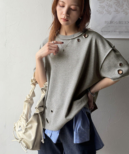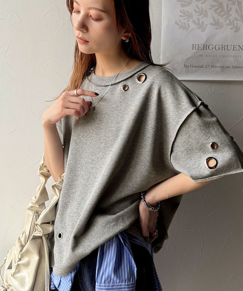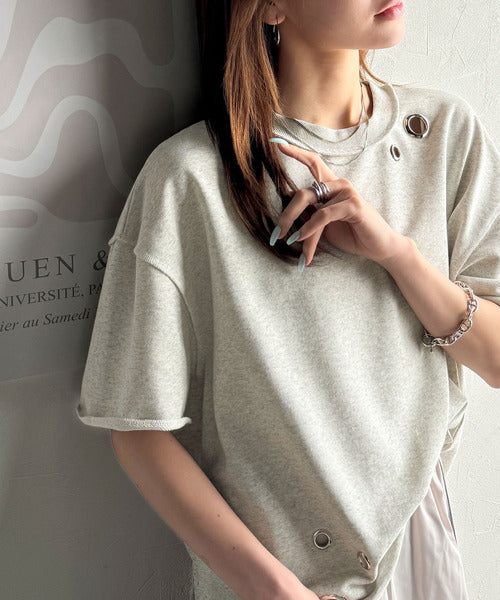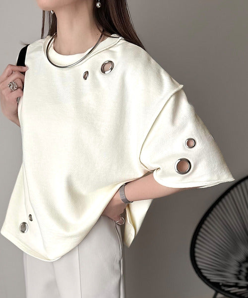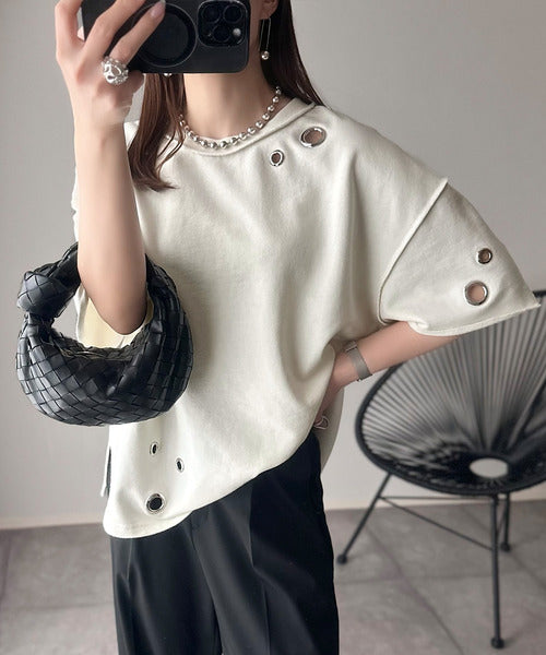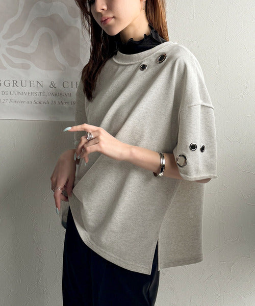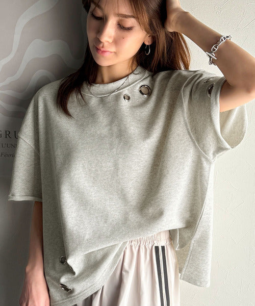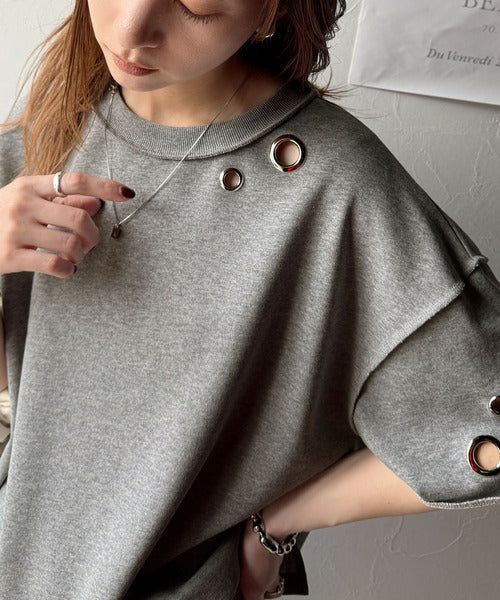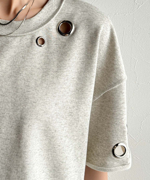 エッジの効いたデザイン☆リングハトメ裏毛半袖スウェット ce1260408