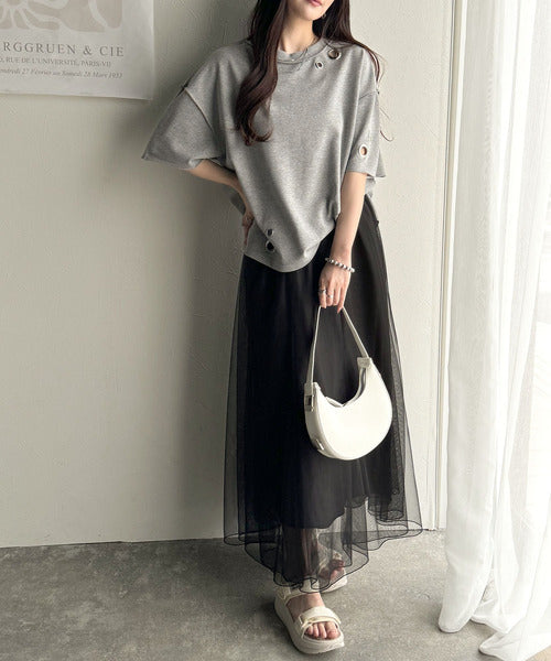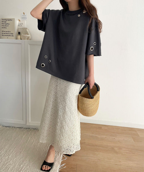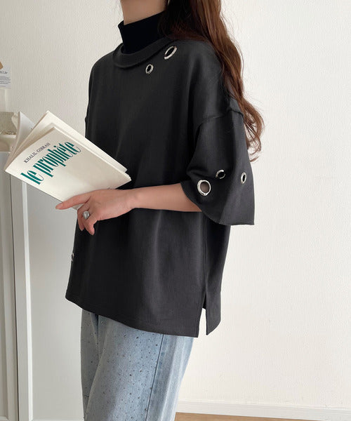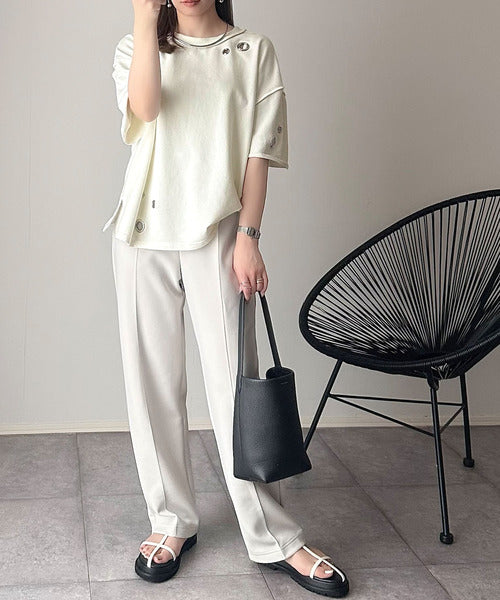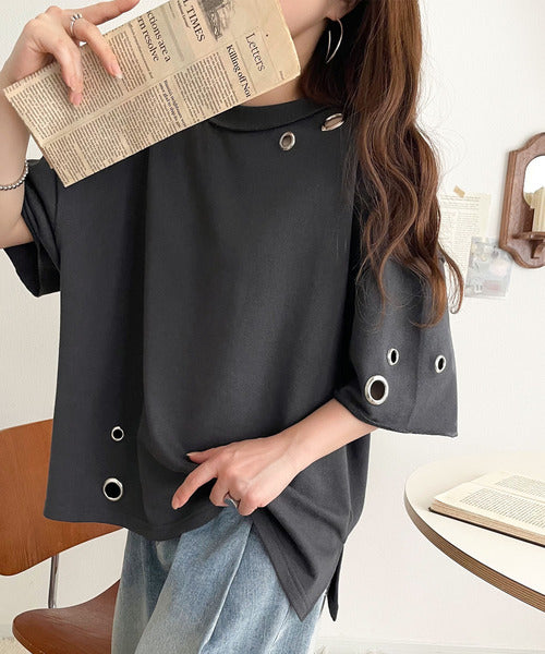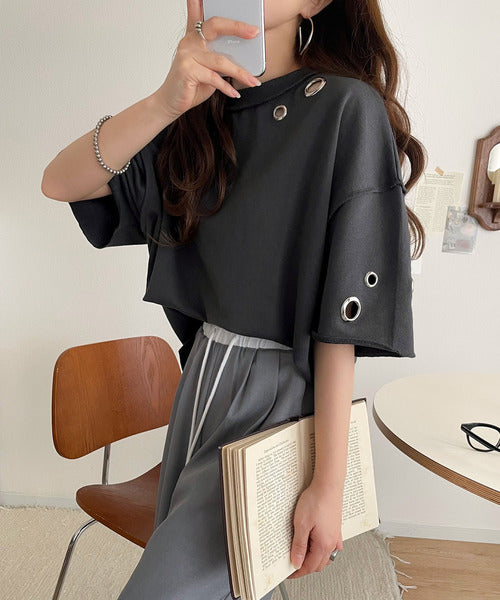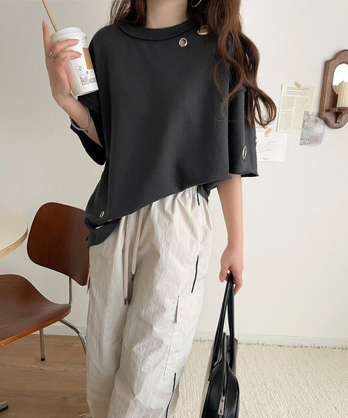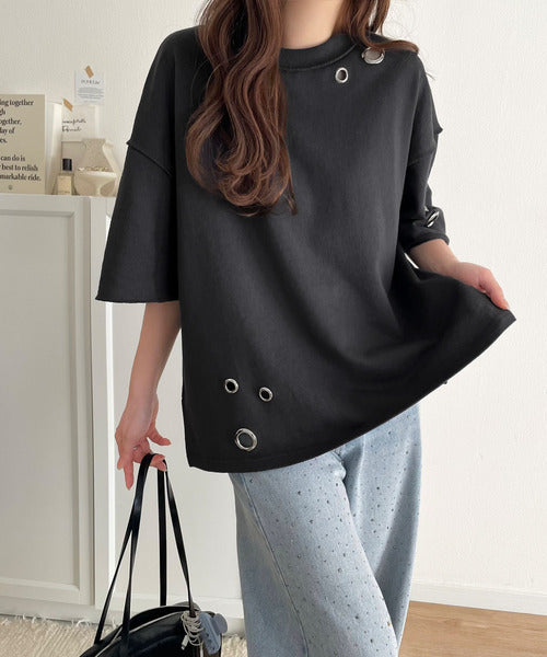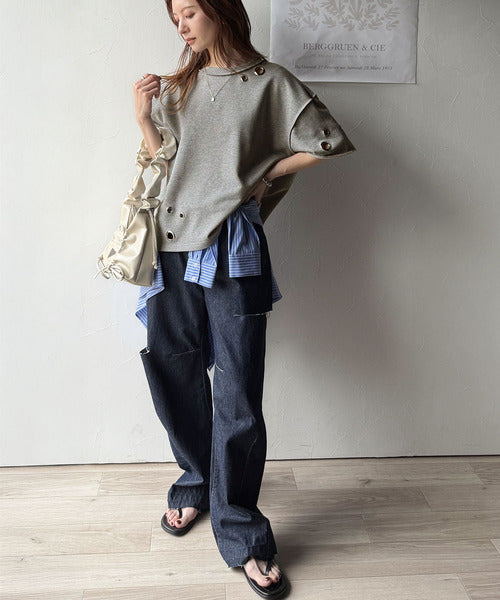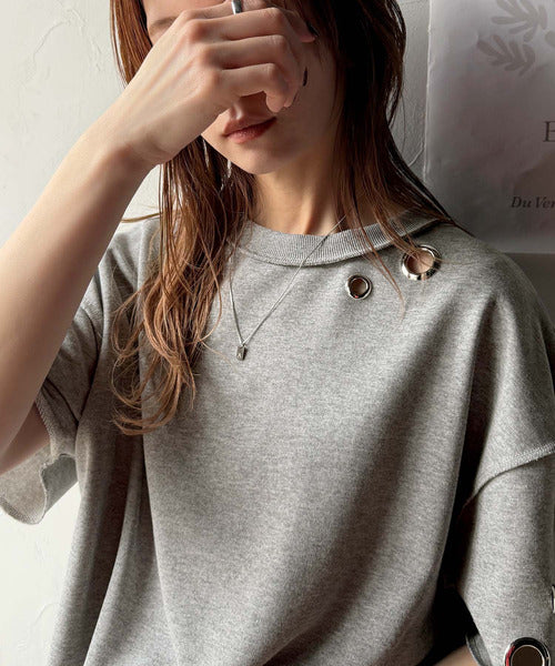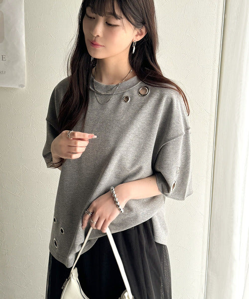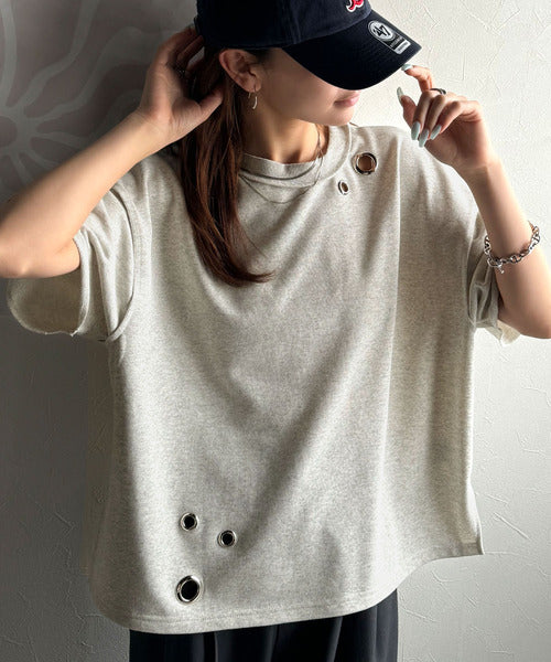 エッジの効いたデザイン☆リングハトメ裏毛半袖スウェット ce1260408