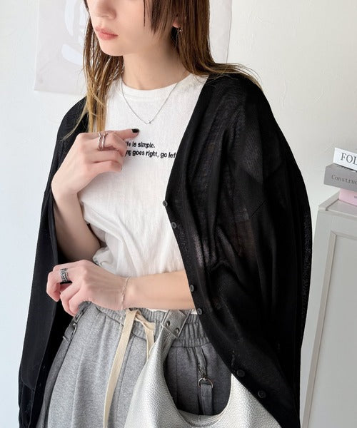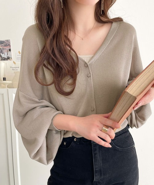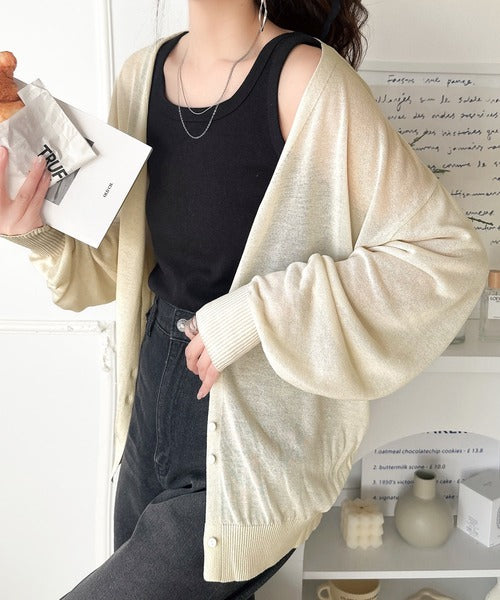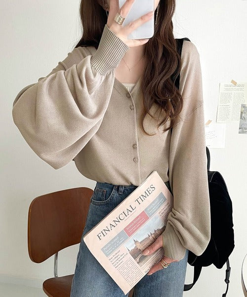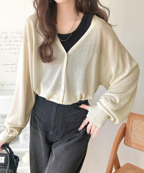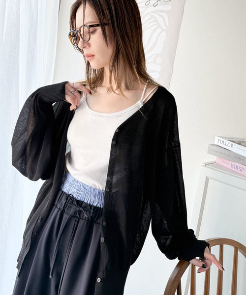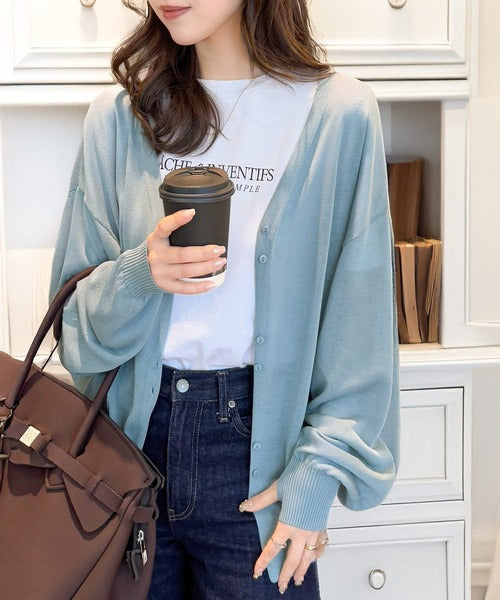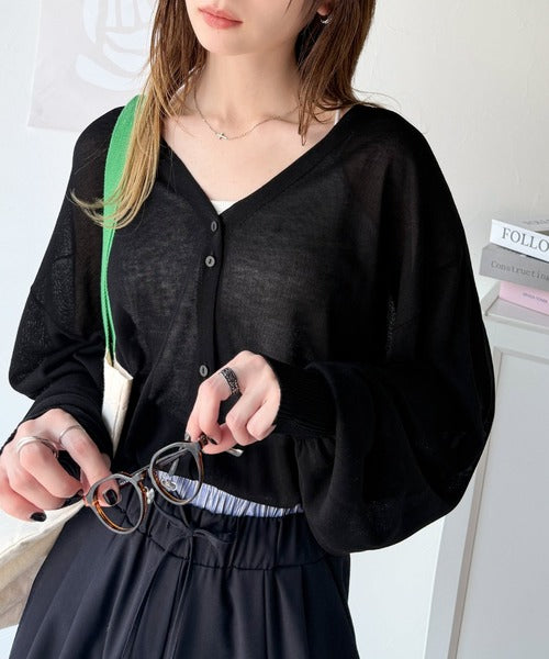 ボリューム袖でさまざまなスタイルやアイテムに合わせやすいシアーカーディガン♡
