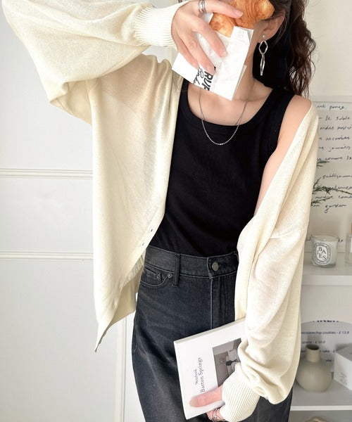 このシアーパフスリーブニットカーディガンは、春夏にぴったりの涼しげな1枚。
