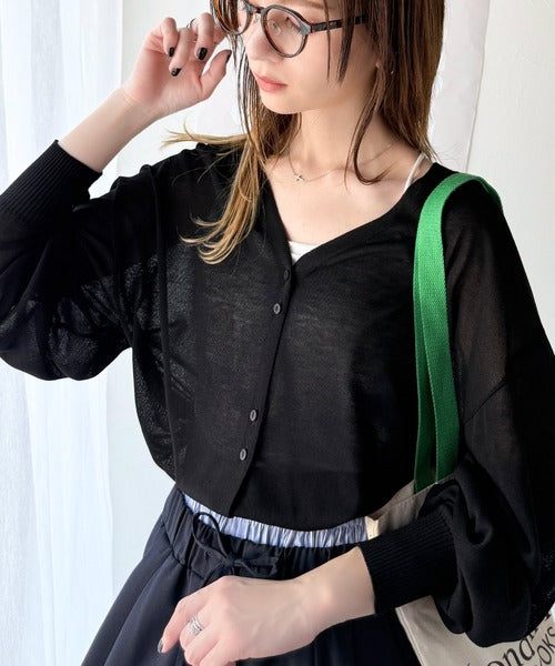 春夏にぴったりなシアーパフスリーブニットカーディガン。