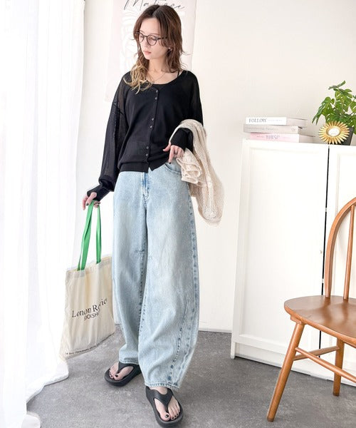 カーブデニムのワイドパンツと組み合わせれば、トレンド感溢れるカジュアルスタイルに!