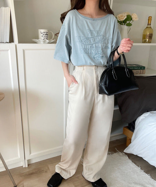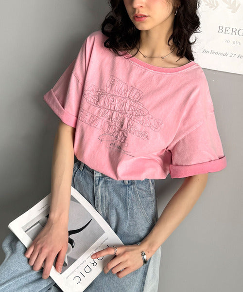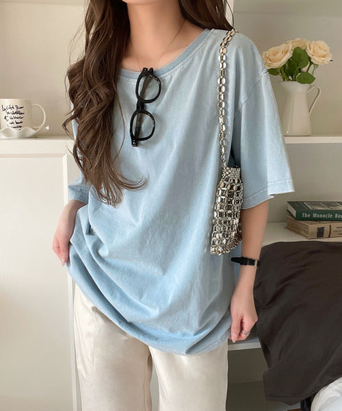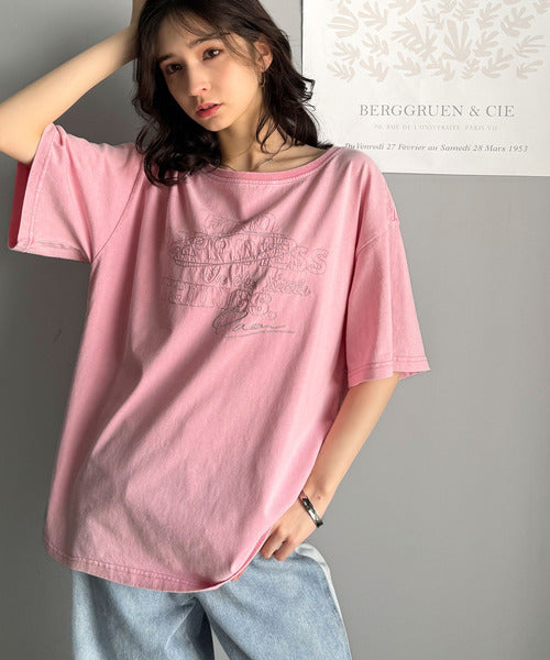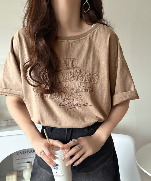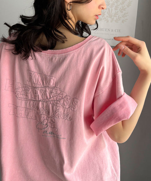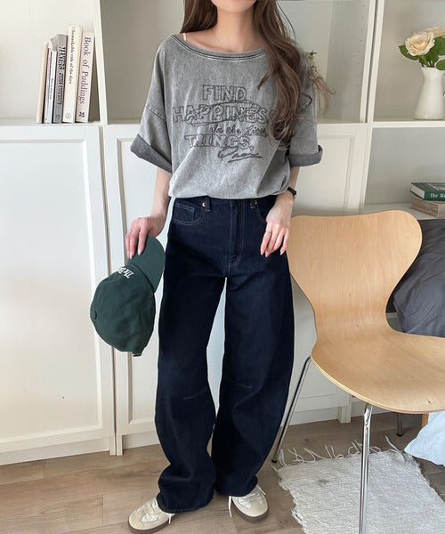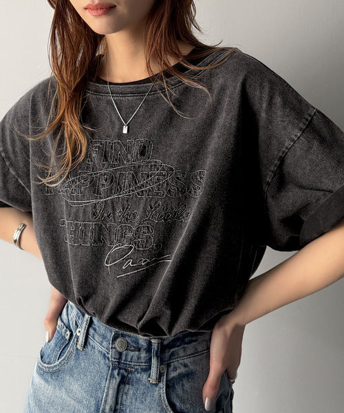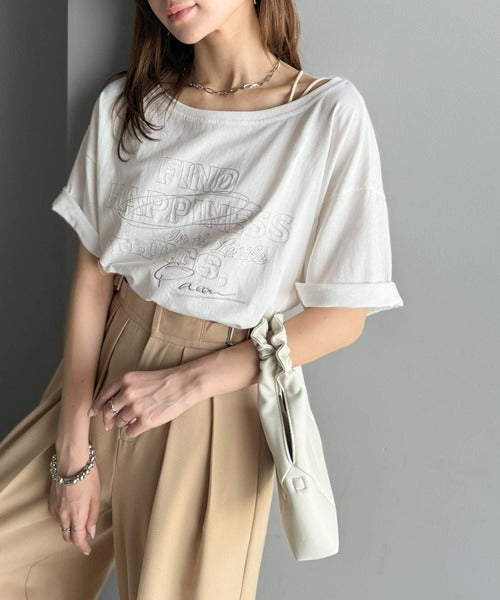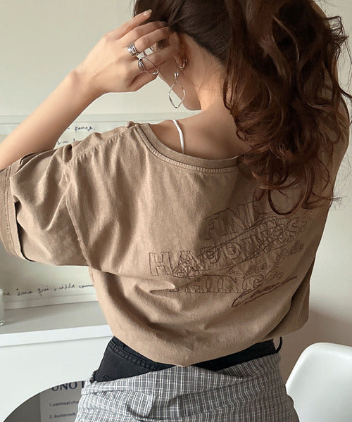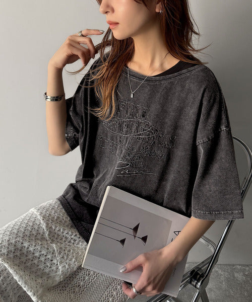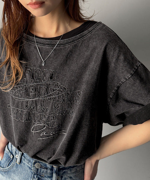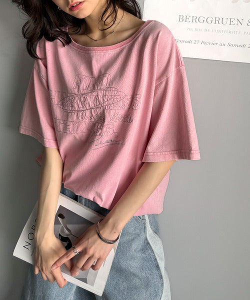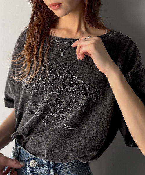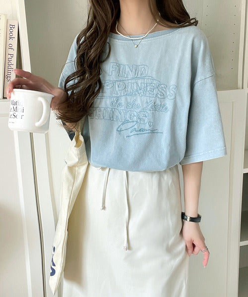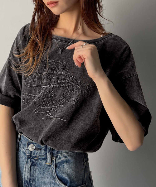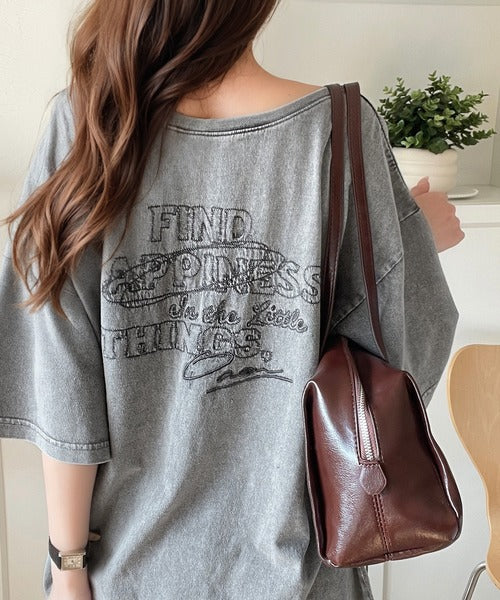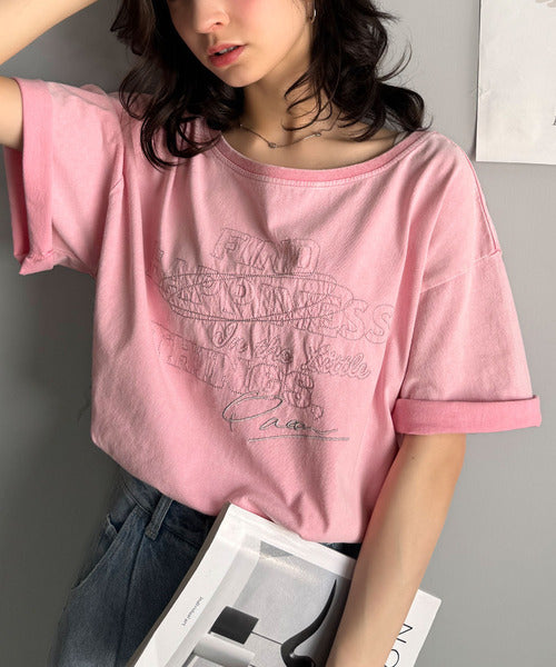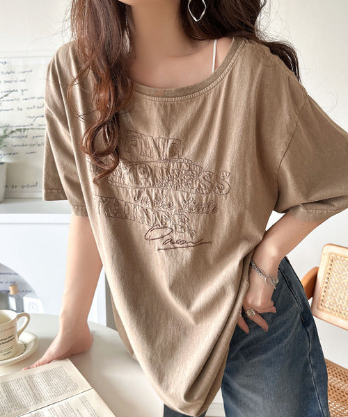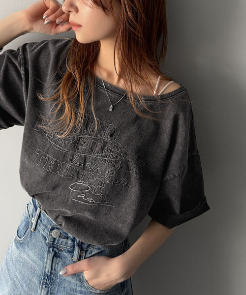 綿100%メンズライクヴィンテージウォッシュ☆前後2way刺繍ワイドネックTシャツ ce1260421