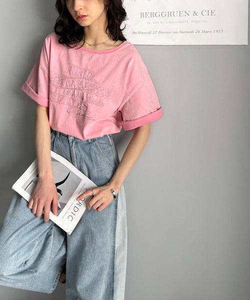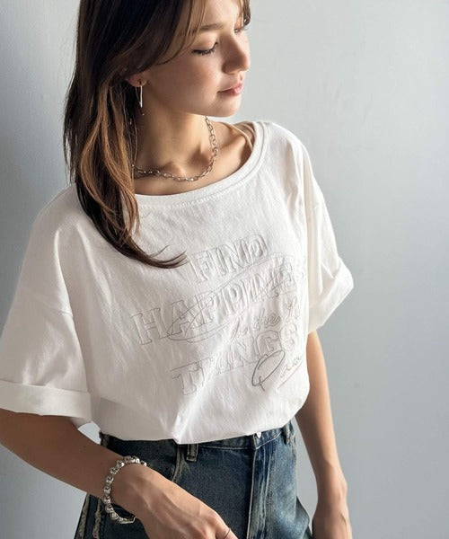 大人が楽しむ♪お洒落でヴィンテージ感満載の綿100%刺繍ワイドネックTシャツ