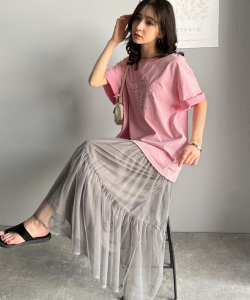 贅沢な刺繍が施された、前後2WAYで着回し自由な半袖Tシャツです。