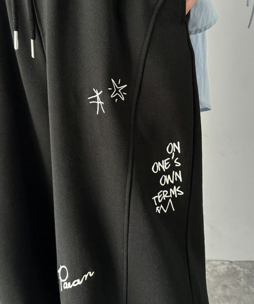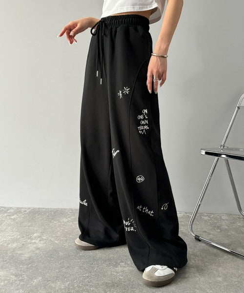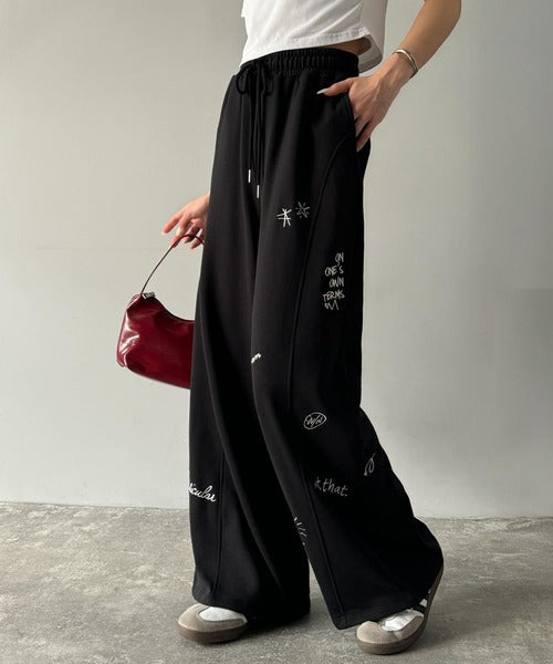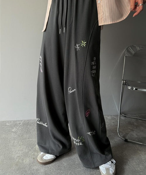 今季のイチオシ!ランダム刺繍裏毛スウェットワイドパンツ ce1260423