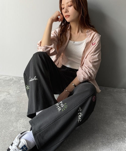 ランダム刺繍スウェットパンツで、カジュアルコーデもこなれ感アップ♪