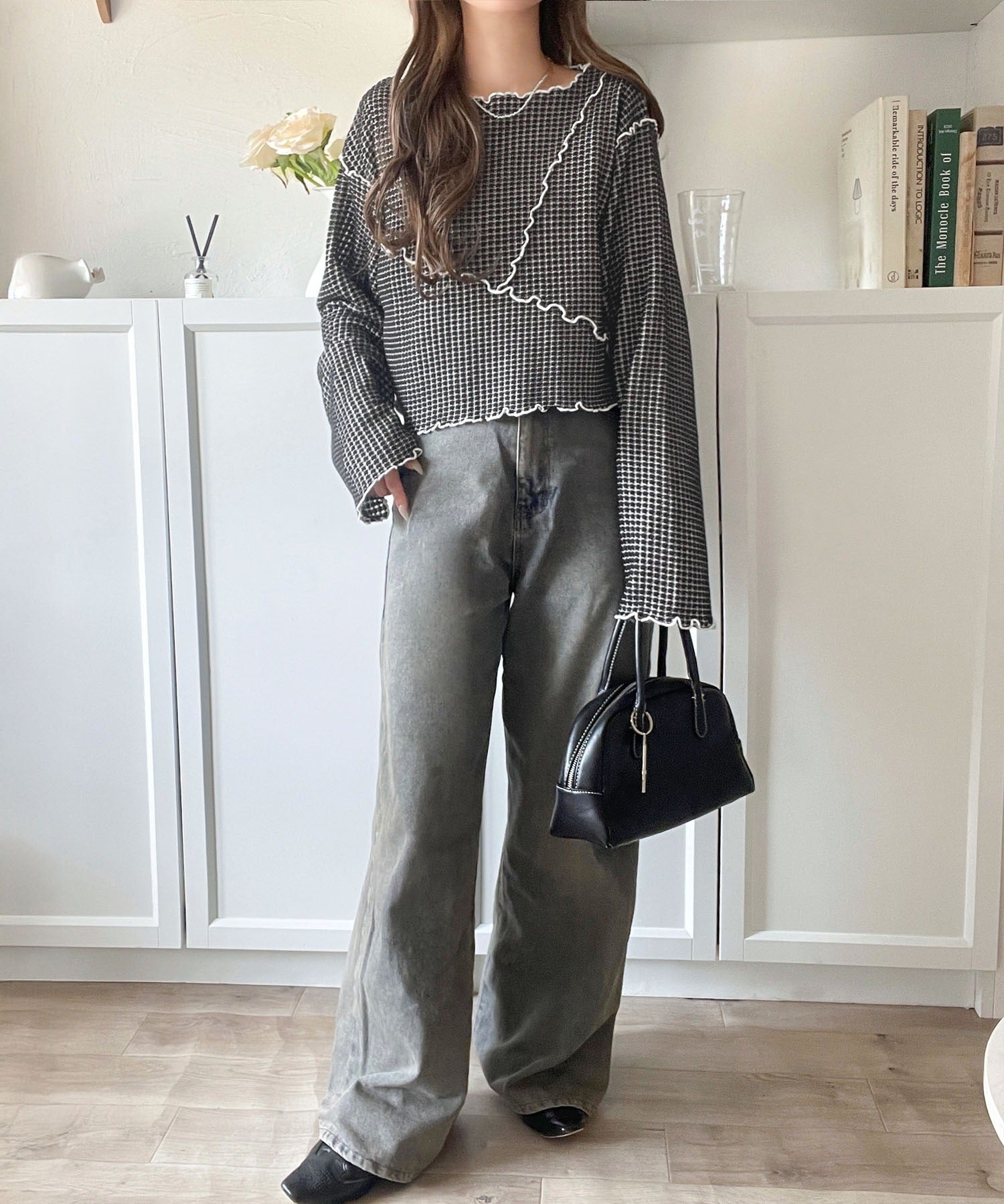 カーブデニムやスウェットパンツなど様々なシルエットのボトムスとの相性も抜群♪