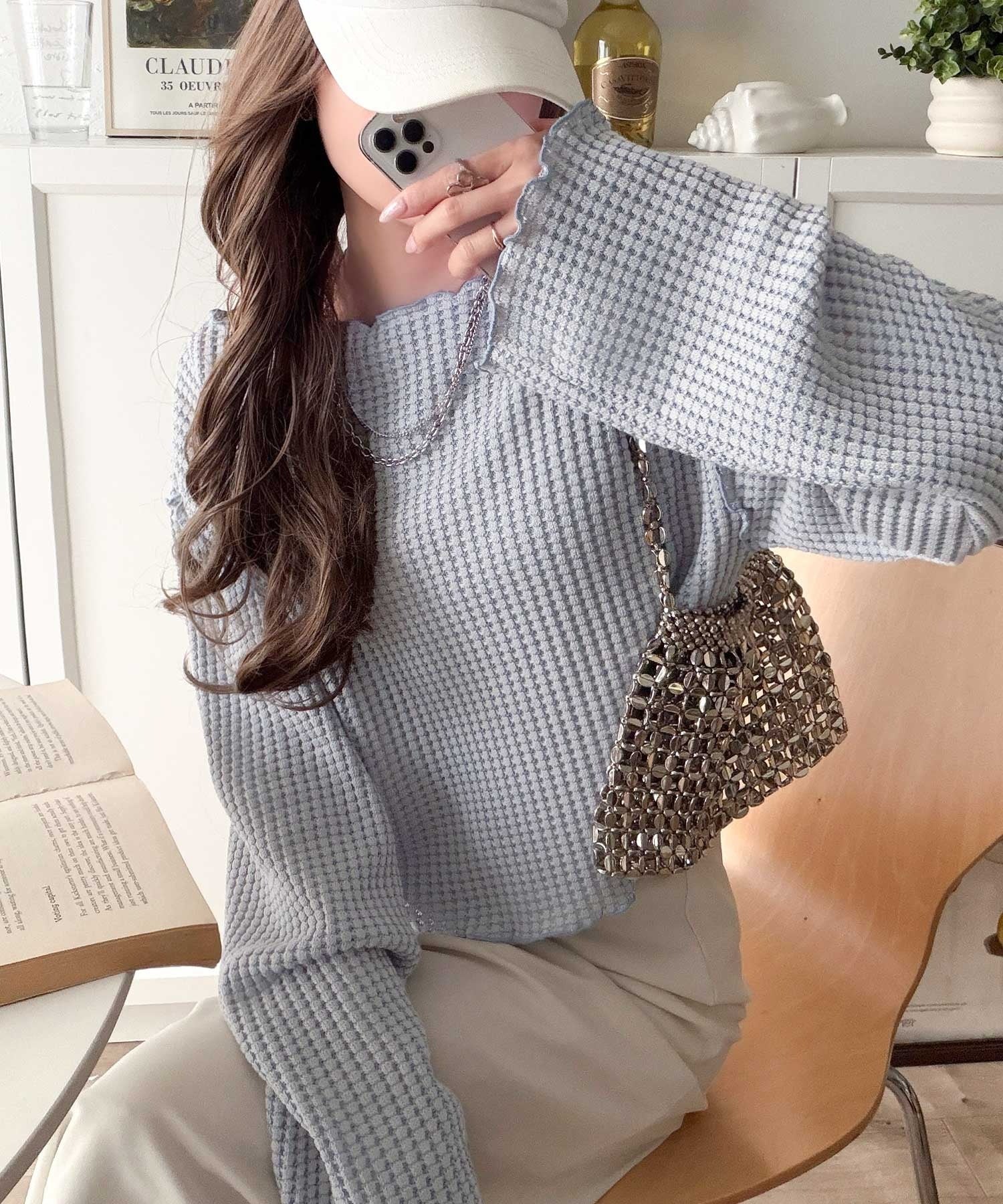 ・手の甲にかかるフェミニンな袖丈