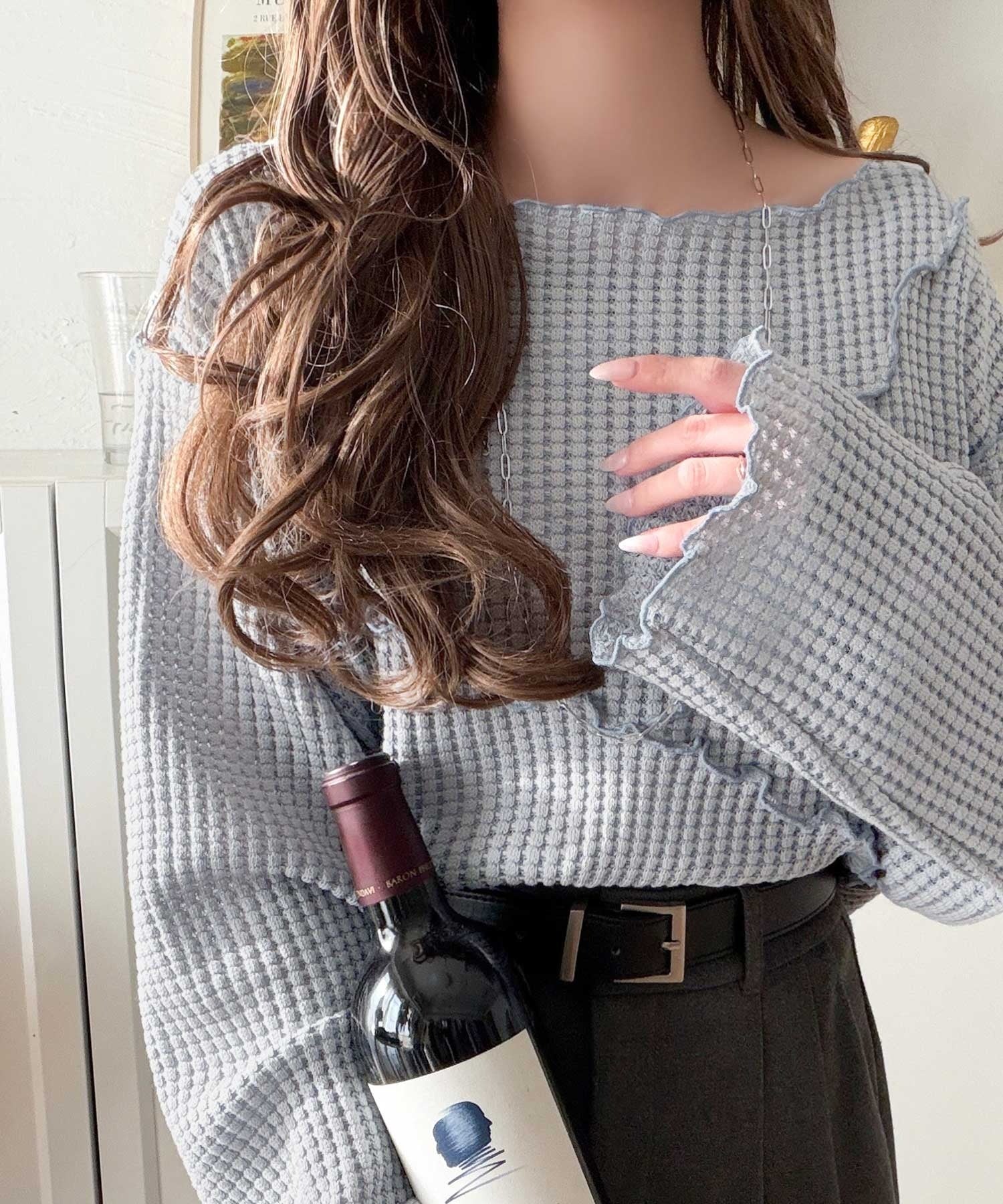 凹凸感あるヘビーワッフル素材と柔らかな肌ざわりが魅力プルオーバー。