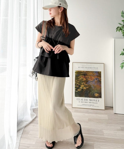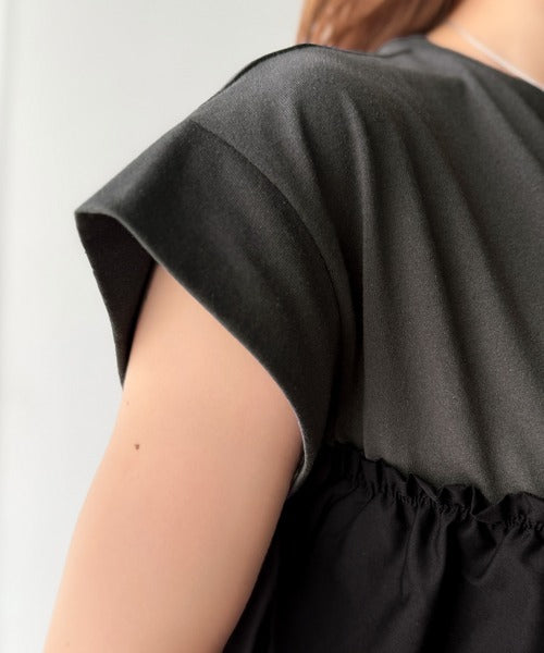 フリル部分は張り感のある布帛素材の異素材ミックス
