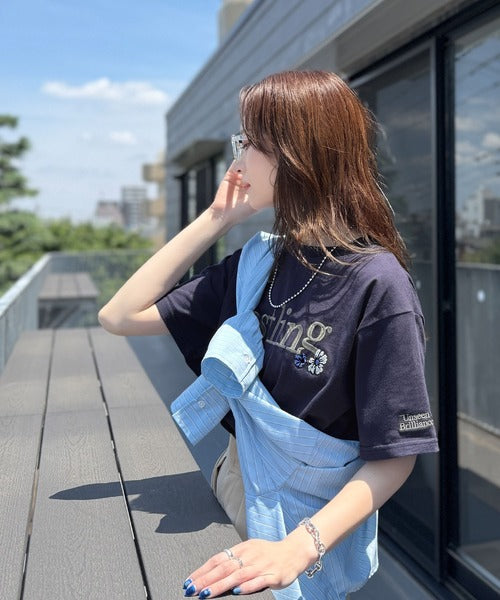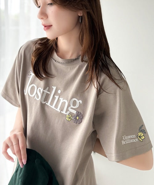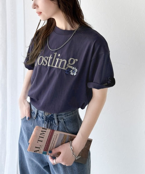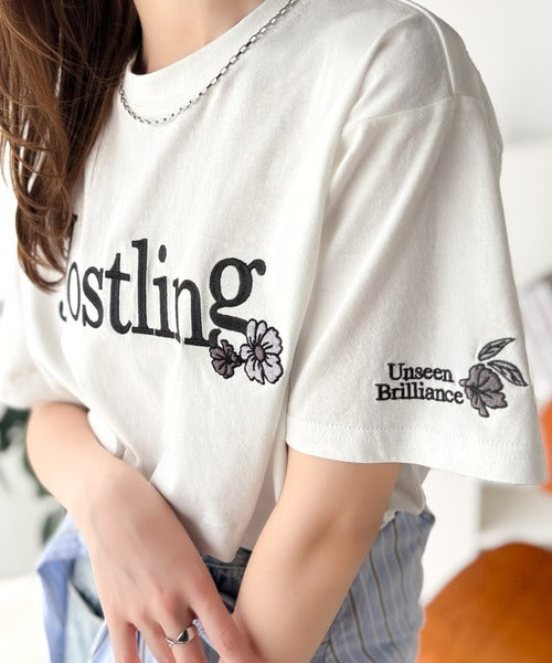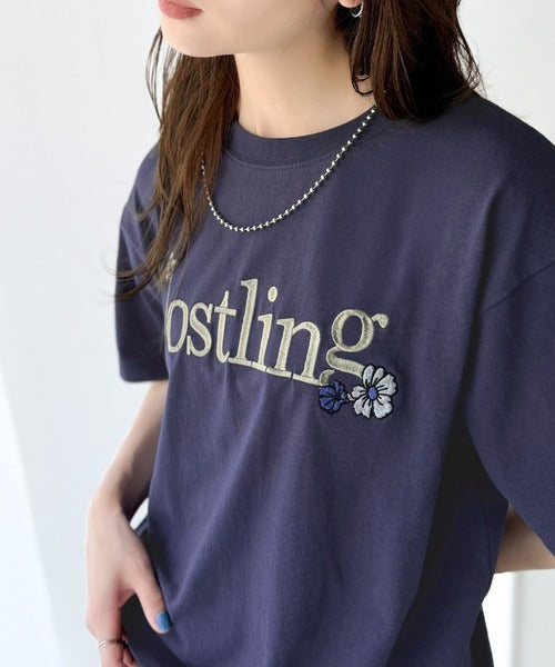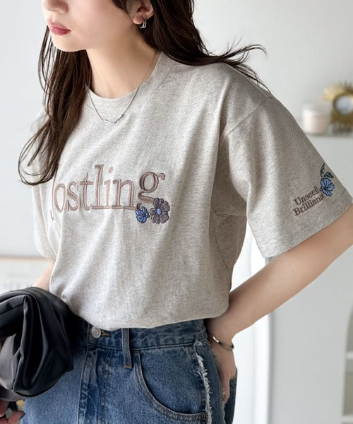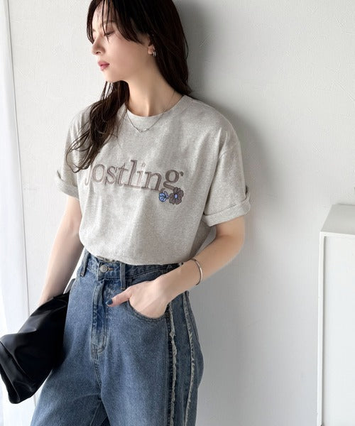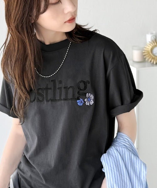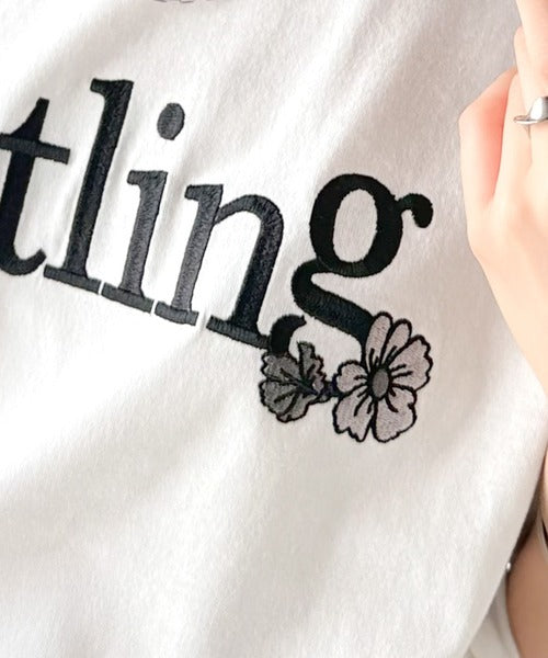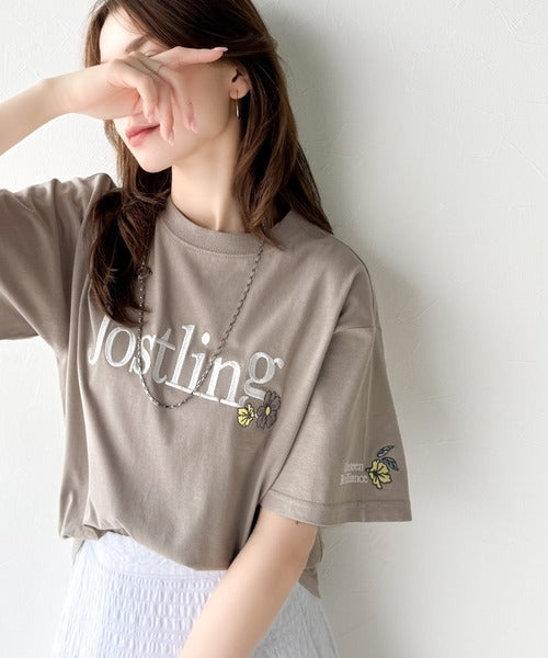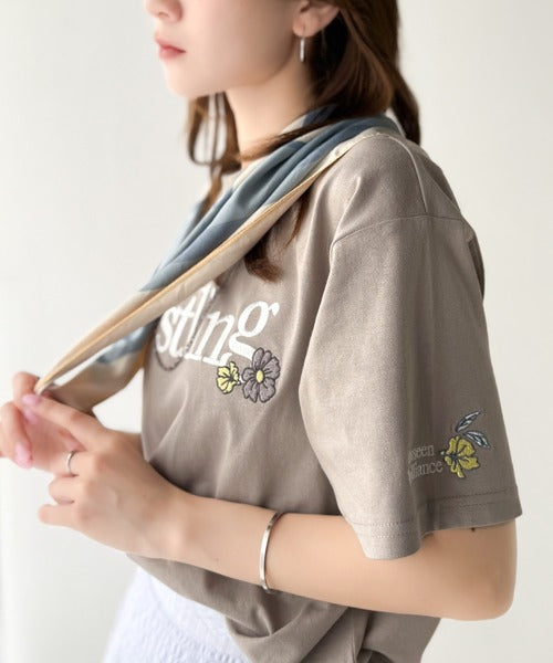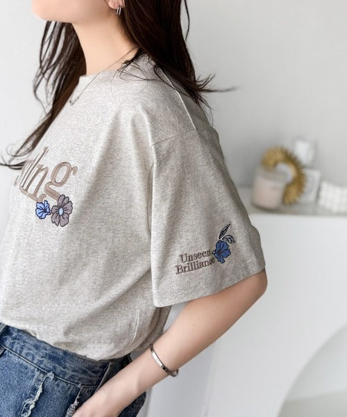 ナチュラルな中に、さりげない華。綿100%ロゴ×フラワー刺繍ビッグTシャツ(半袖) ce1260485