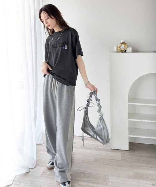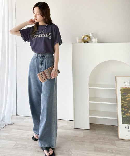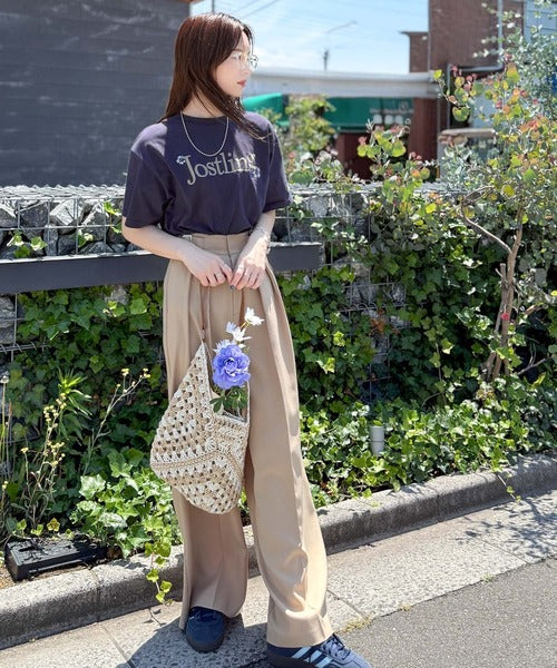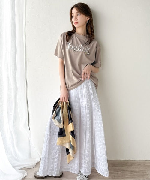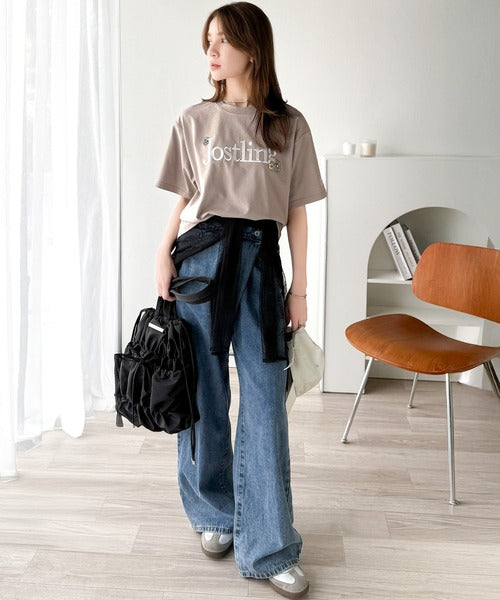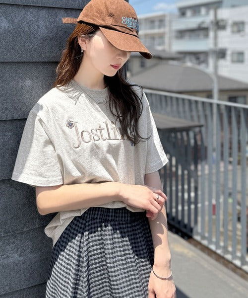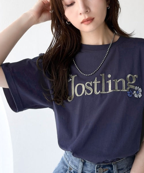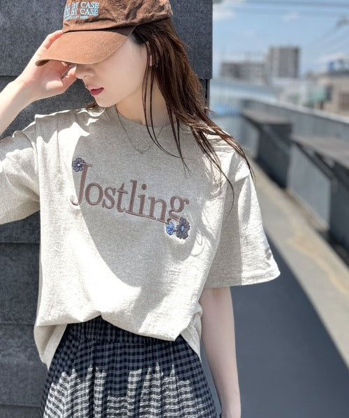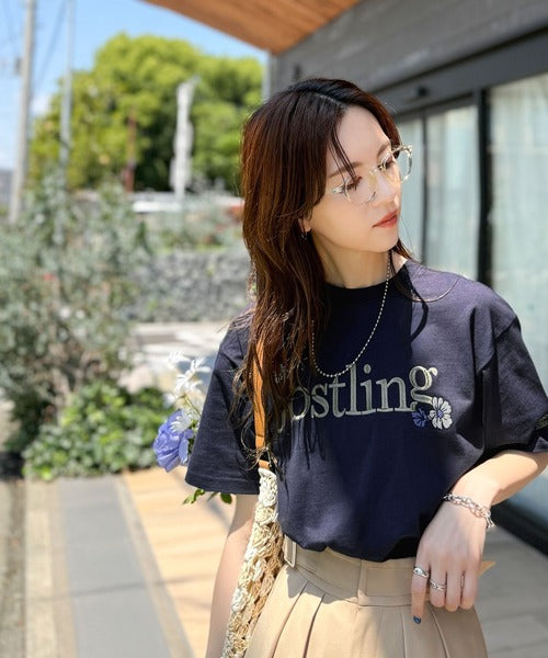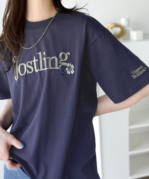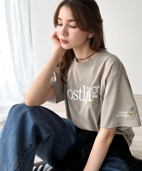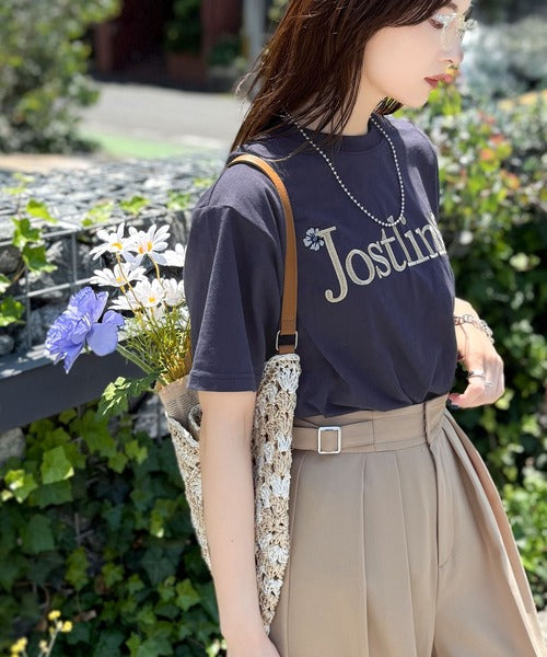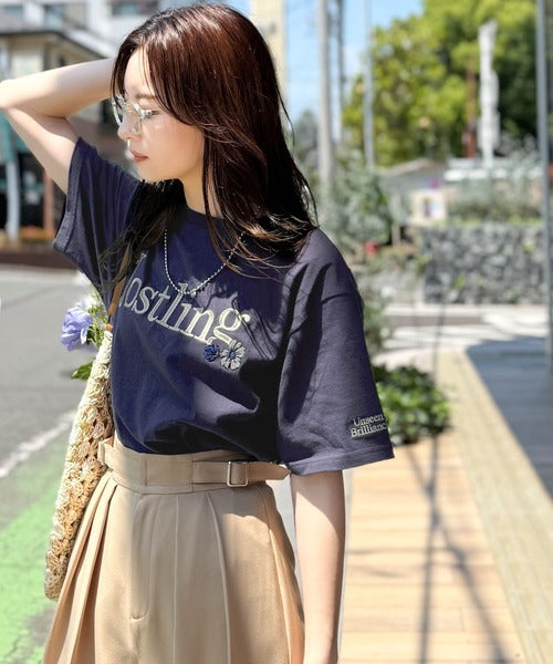 ナチュラルな中に、さりげない華。綿100%ロゴ×フラワー刺繍ビッグTシャツ(半袖) ce1260485