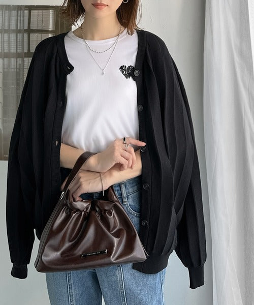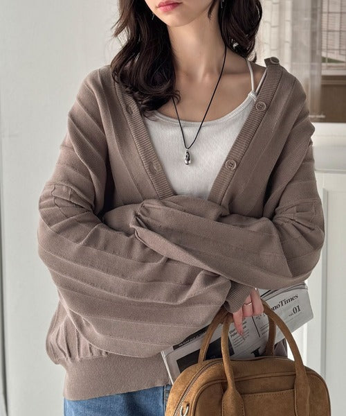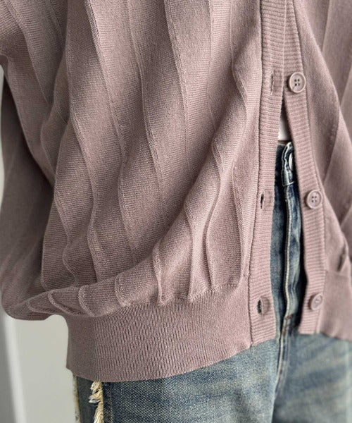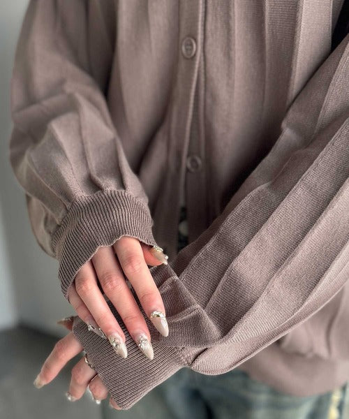 カジュアルから上品なスタイルまで、幅広く着回せるタック編みカーディガン♪