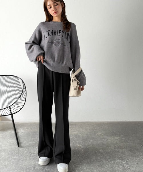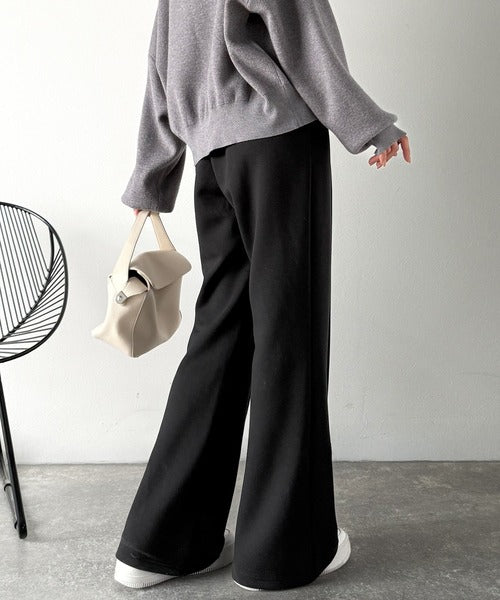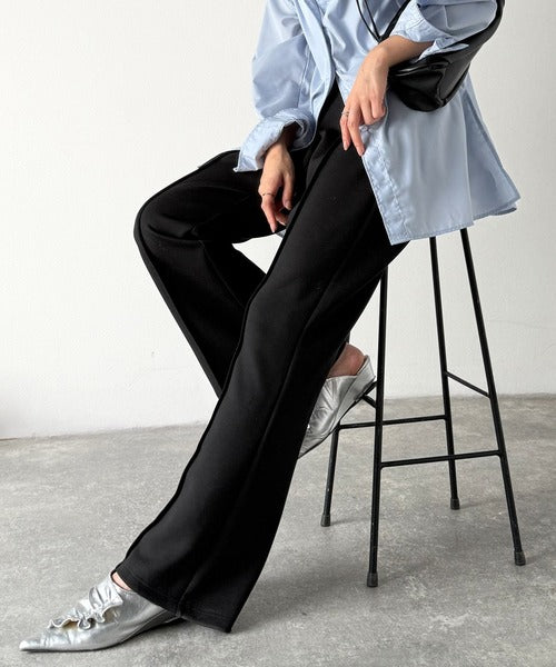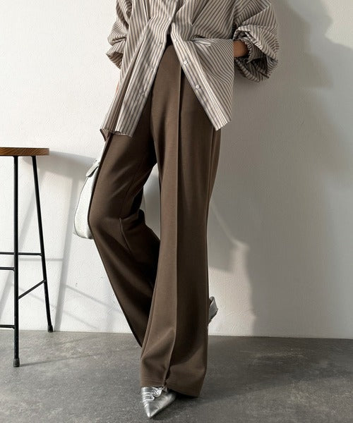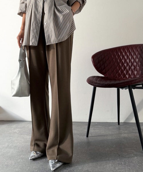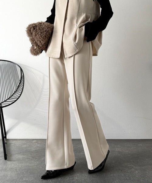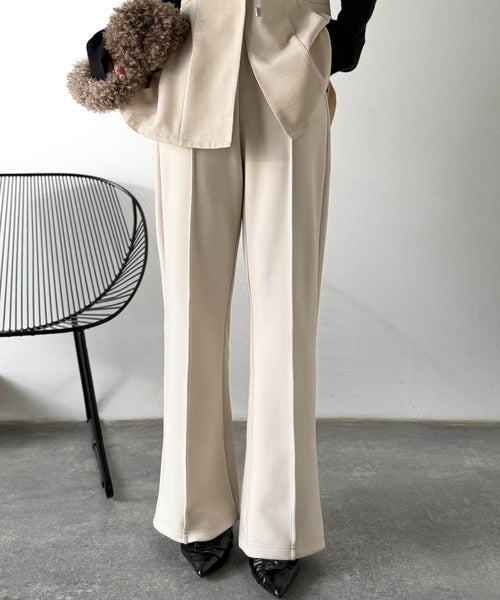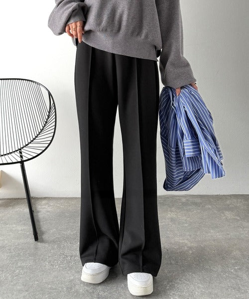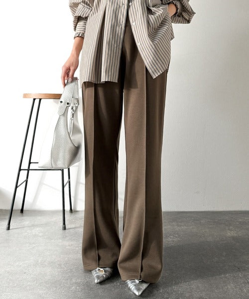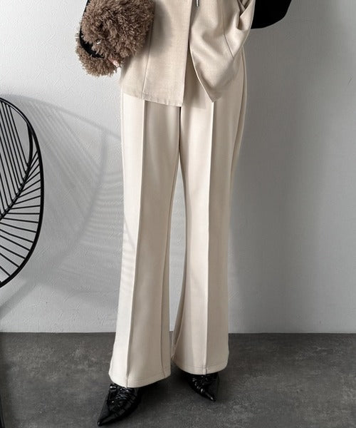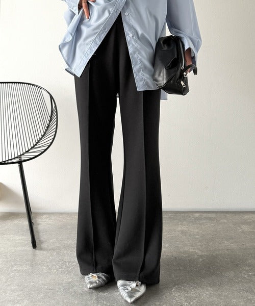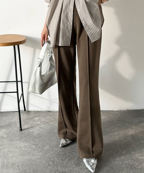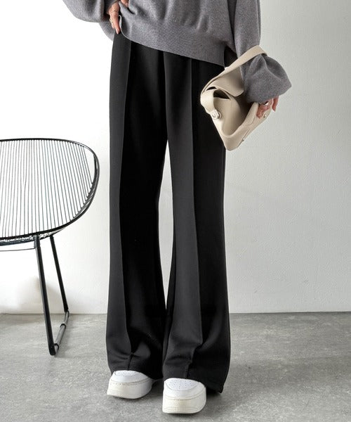 大人脚長シルエット♪ダンボール素材ピンタックフレアパンツ ce1260521