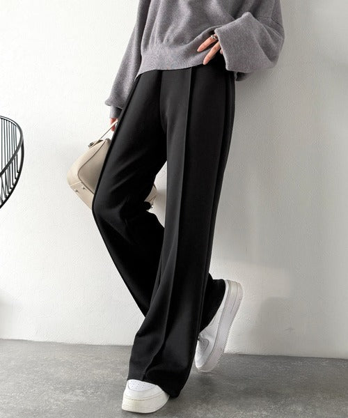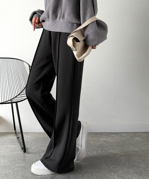伸縮性があり動きやすく、すっきりなのにリラクシーな穿き心地。