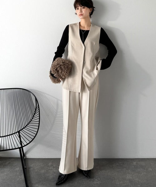 さらにジレを羽織ってローファーパンプスでバランスを整えれば、おしゃれ度アップ間違いなしです☆