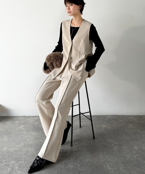 ・センターピンタックで縦ラインを強調し脚長視覚効果