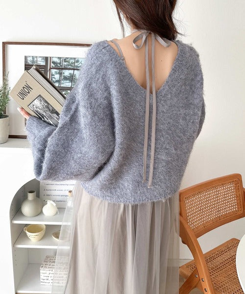 大人フェミニンな印象を与えるニットトップスとチュールコンビワンピースのセットが登場!