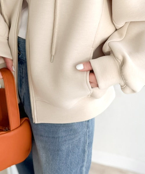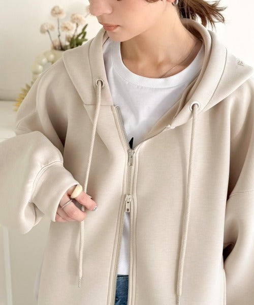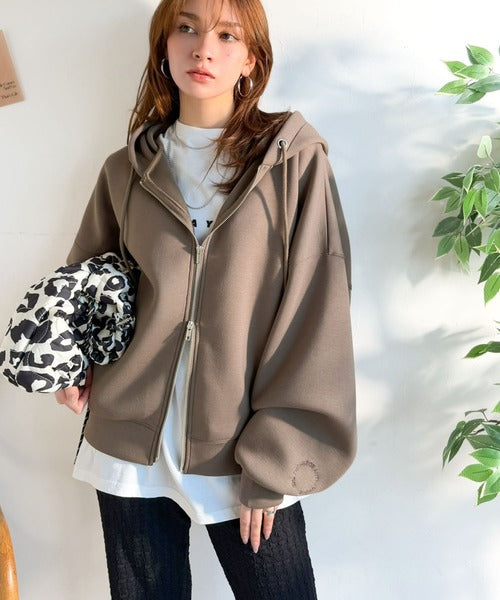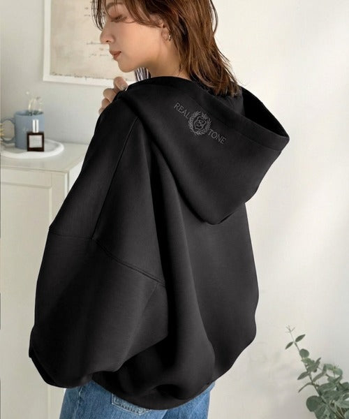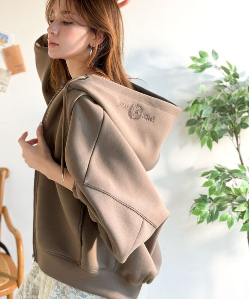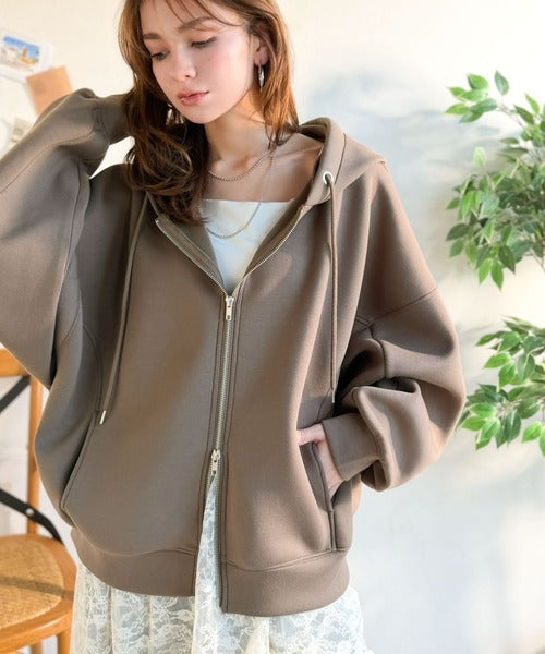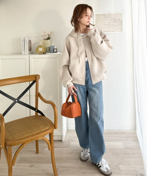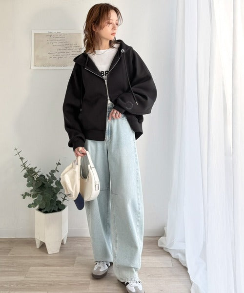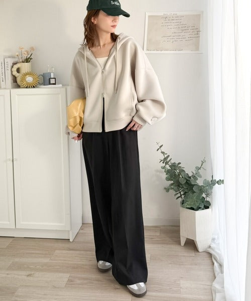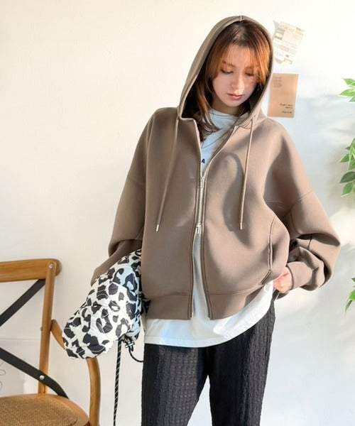 程よいハリ感と上品さのクロップドワイドダンボールパーカー。
