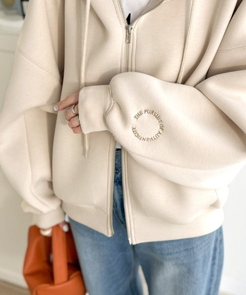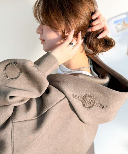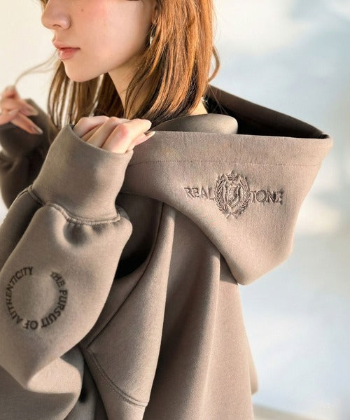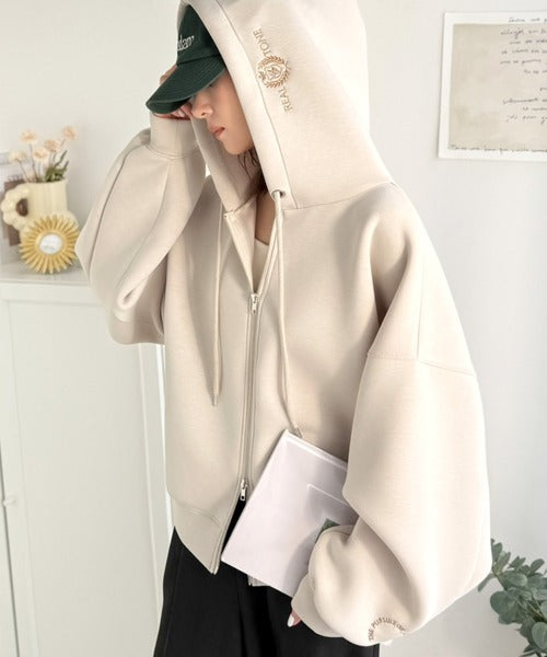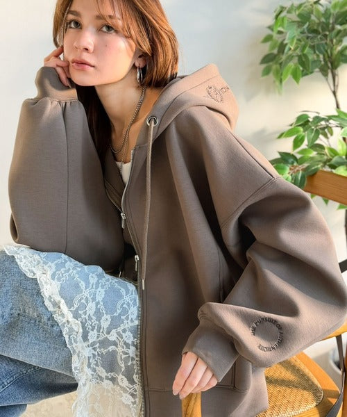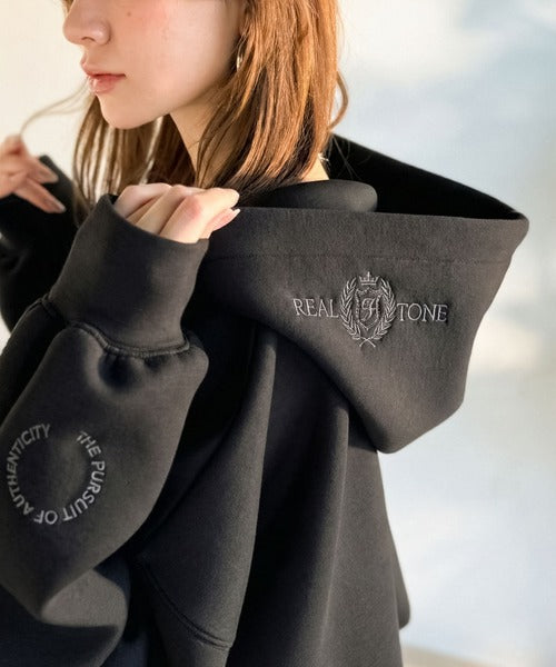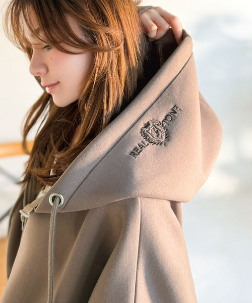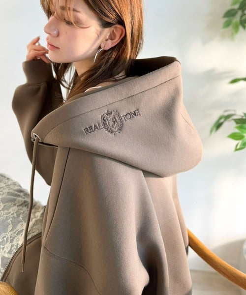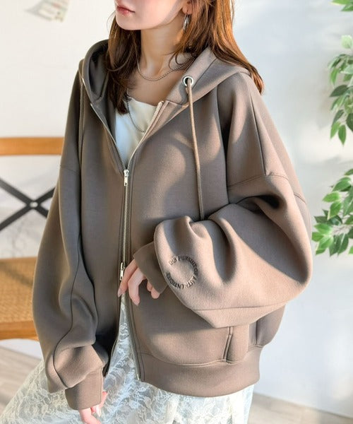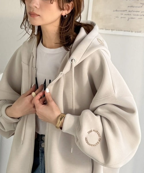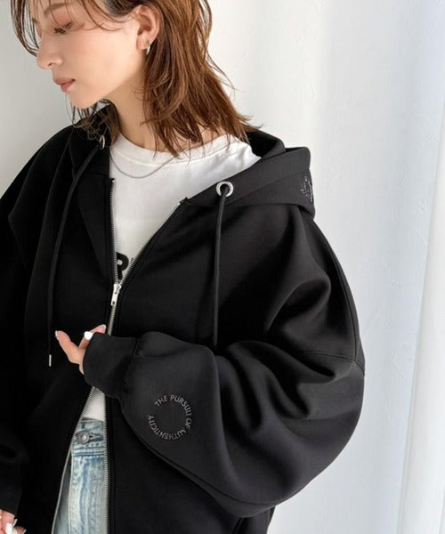 程よいハリ感と上品さのクロップドワイドダンボールパーカー。