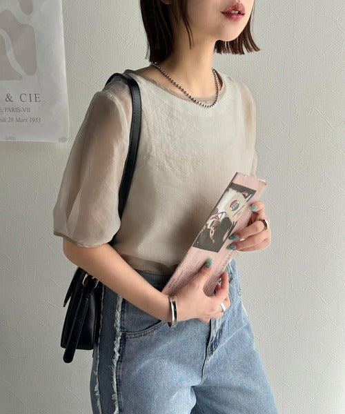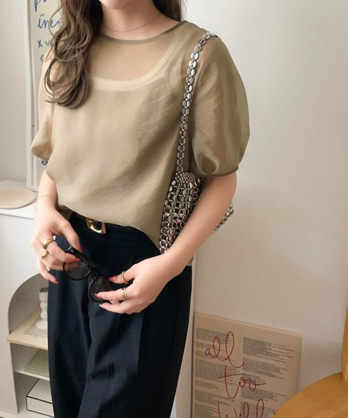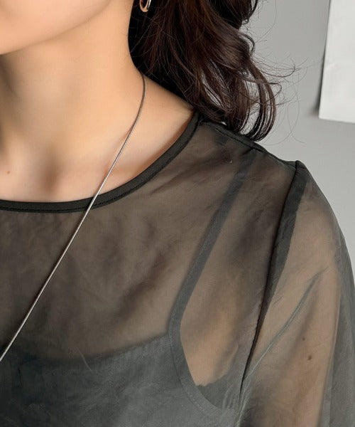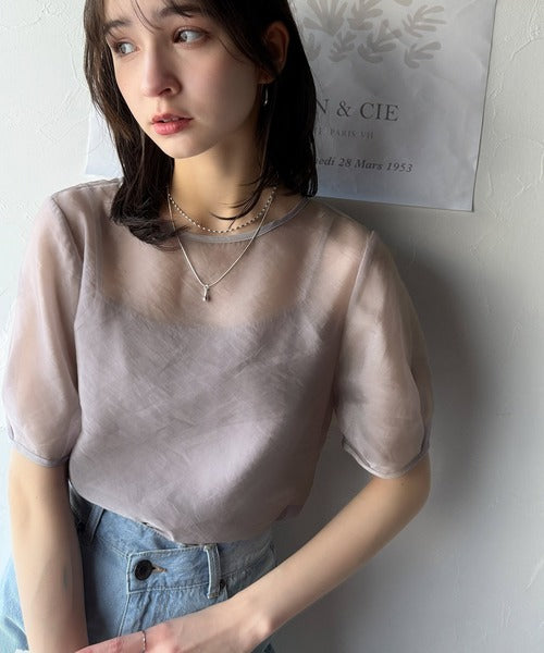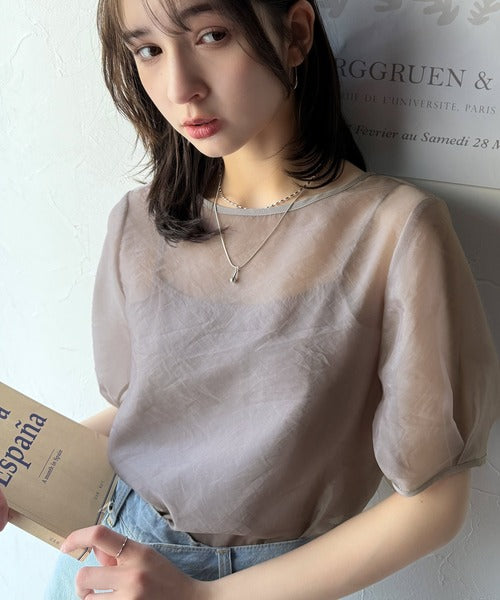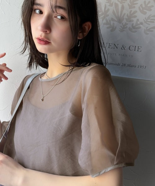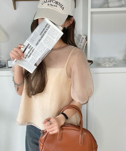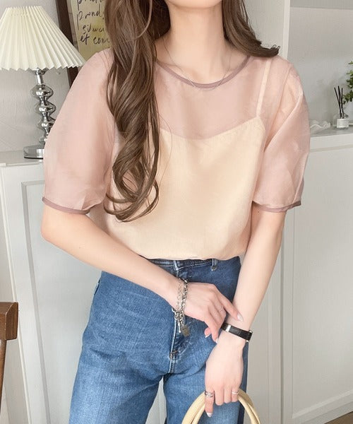 ・涼やかシアー素材ブラウスにキャミソールがドッキング