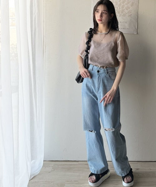 このキャミドッキングシアーブラウスは、デニムやリネンパンツと合わせることで、リラックスしたカジュアルスタイルを楽しめます♪