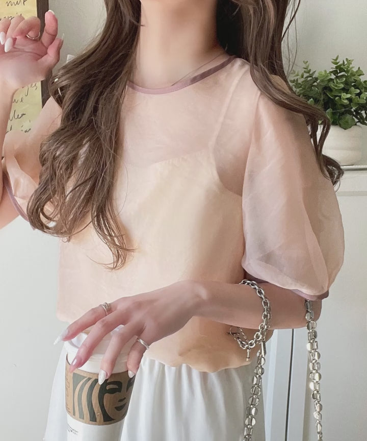 ※オーガンジートップスについて、蒸気を当てるとシワが出やすく繊細なお素材となっておりため