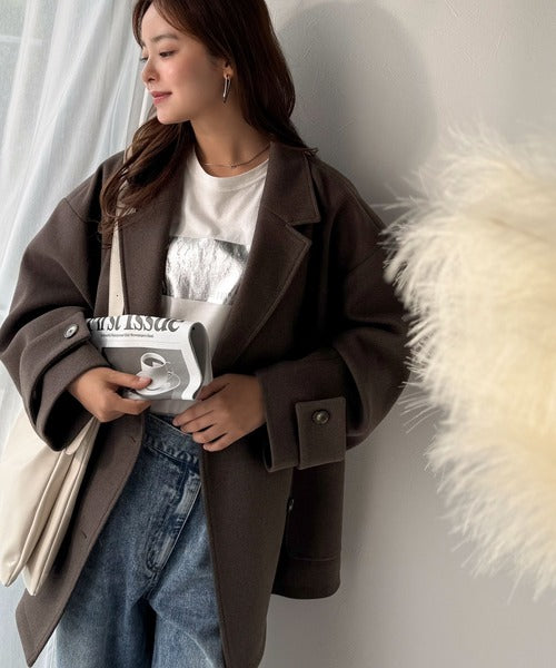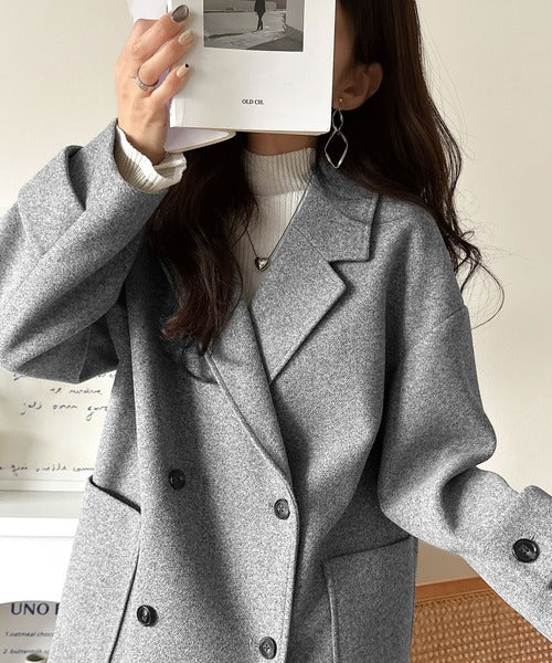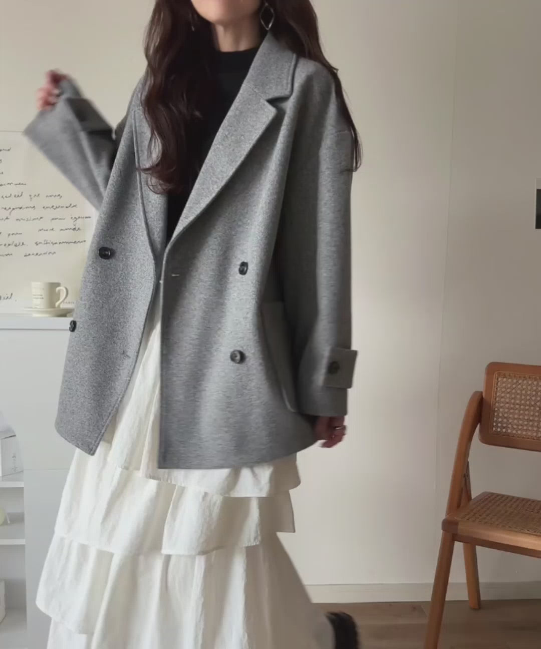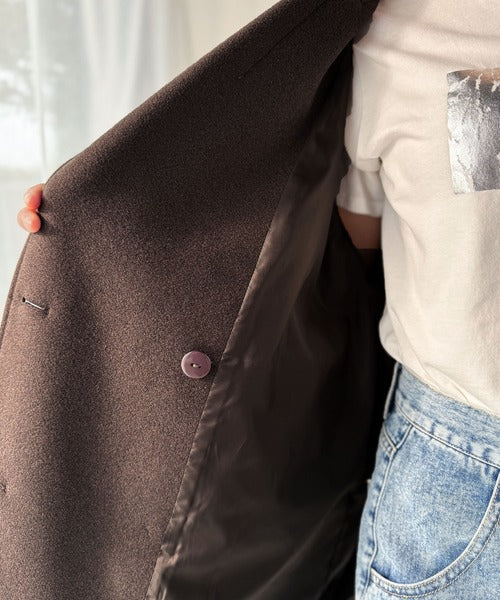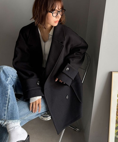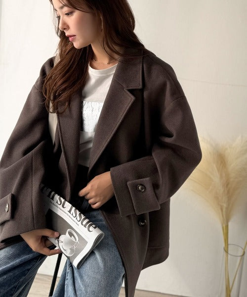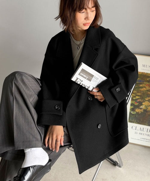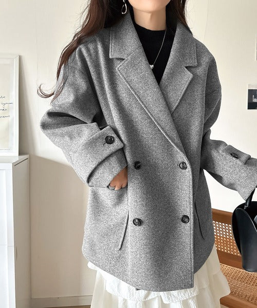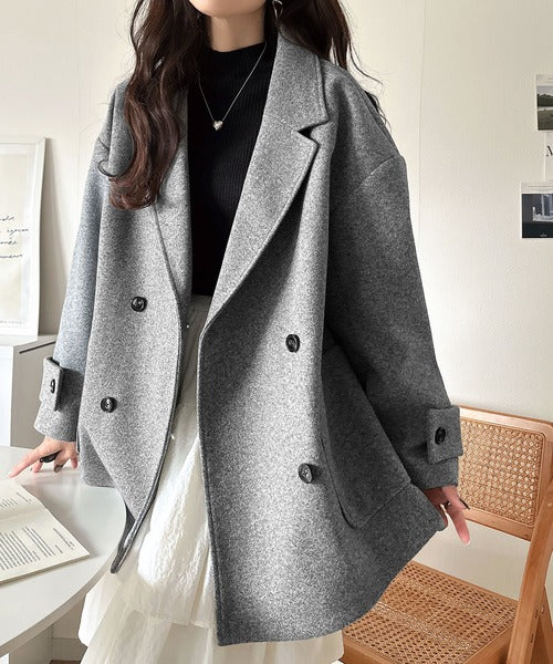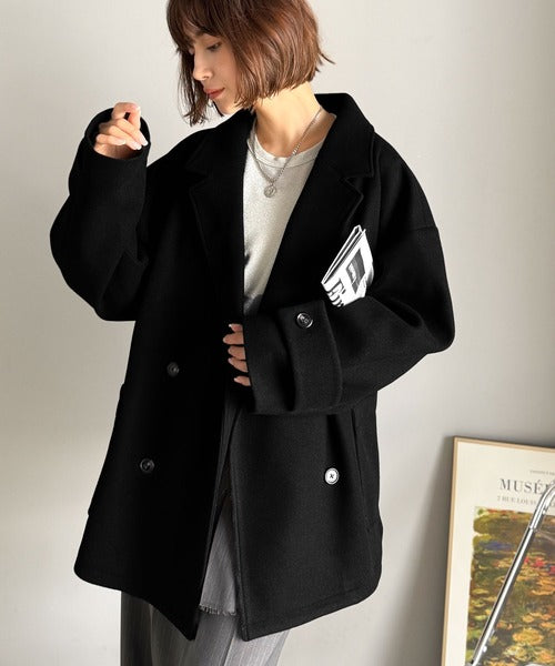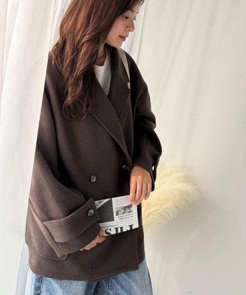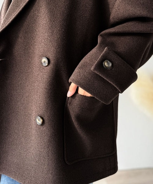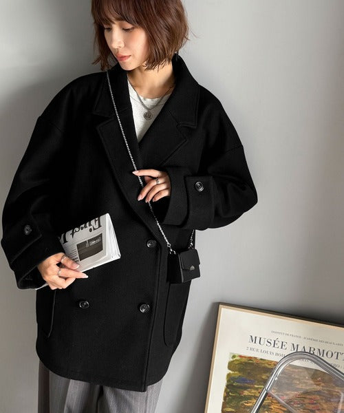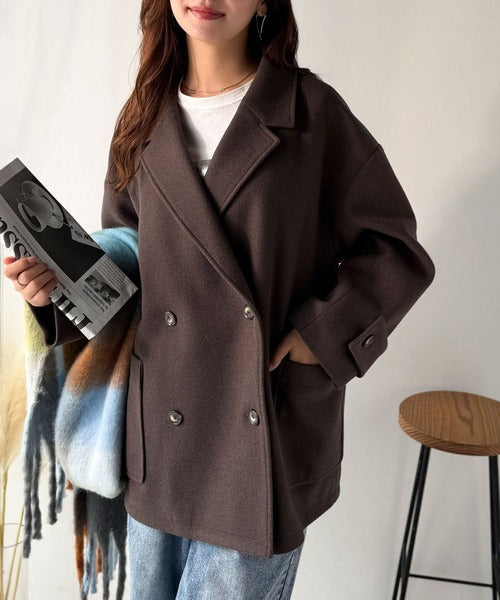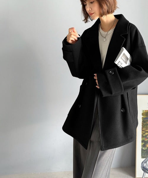 トレンドを先取り♪こなれ感UP、ダブルボタンジャケットメルトンコート(ミドル丈) ce1265008
