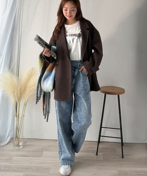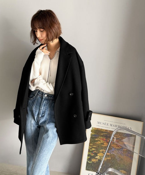 上品さとトレンドを兼ね備えたダブルボタンジャケットコート。
