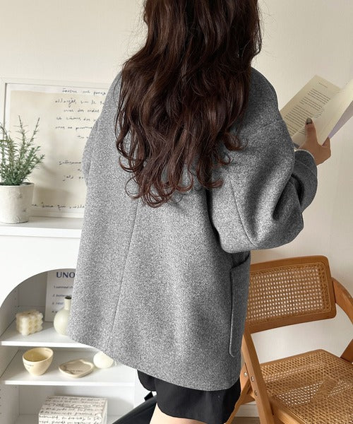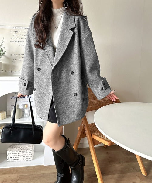 このダブルボタンジャケットコートは、シンプルながらも洗練されたデザインが魅力。