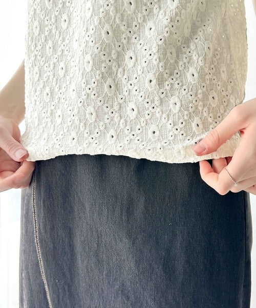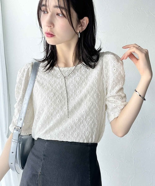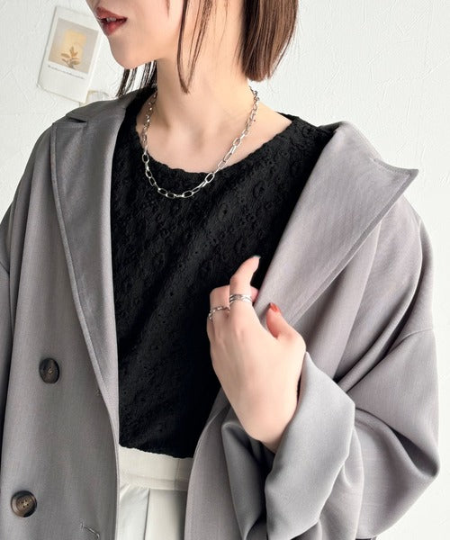 一枚で着ても存在感のあるカットソーレースブラウスですが、