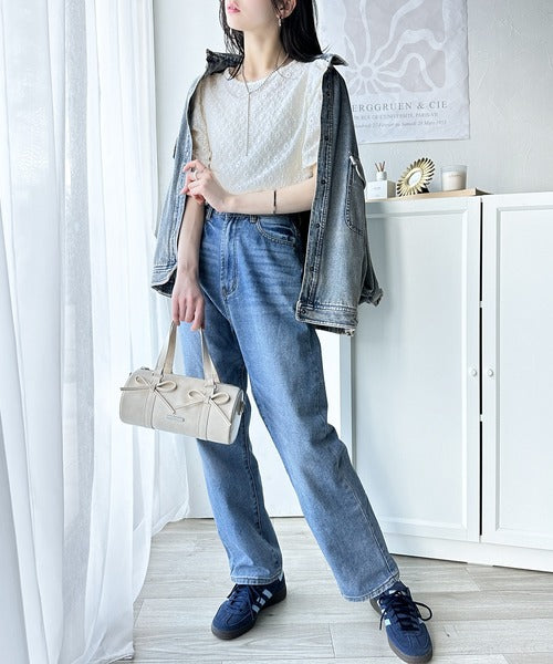 その日の気分に合わせてカーブデニムやフレアパンツを合わせてもOK◎